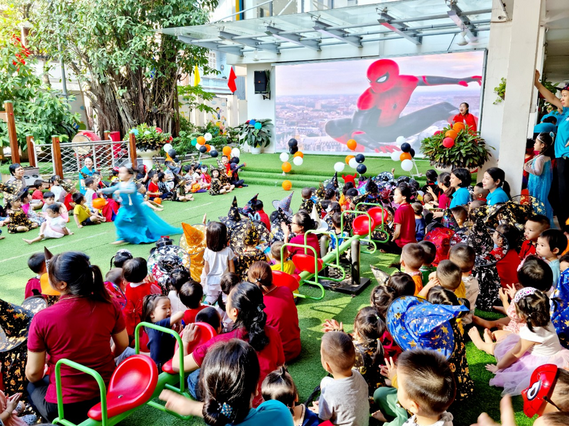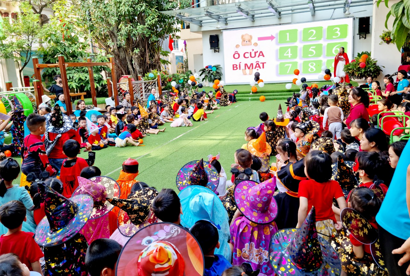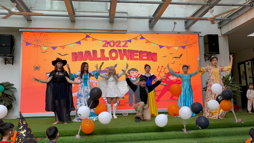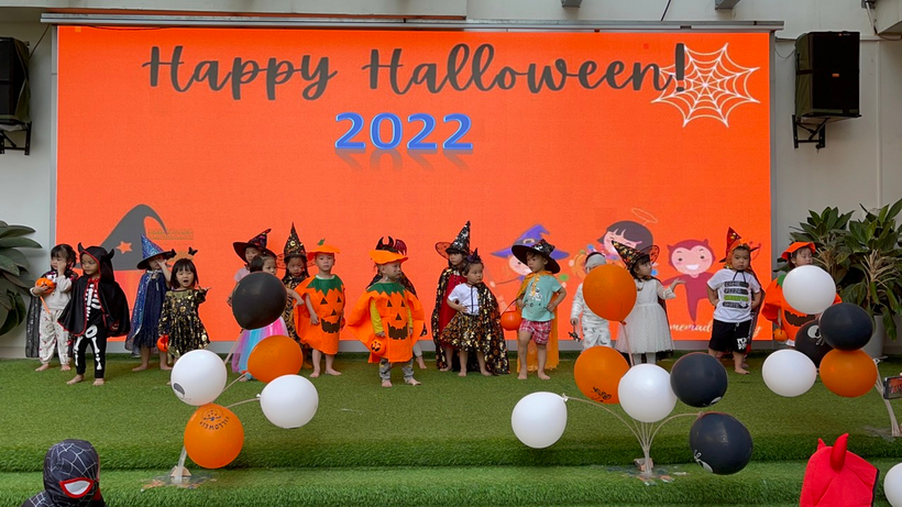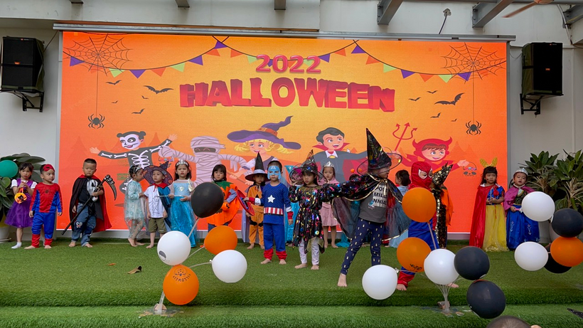 Đặc biệt, ngày 31/10 Trẻ được trải nghiệm và hòa nhập cùng không khí lễ hội Halloween do nhà trường tổ chức tại sân trường với các hoạt động: biểu diễn văn nghệ, biểu diễn thời trang của các khối lớp, tham gia các trò chơi (đoán tên các nhân vật Haloween sau ô cửa bí mật, trò chơi Freeze, trò chơi tìm kẹo Haloween và nhẩy bắt bóng).