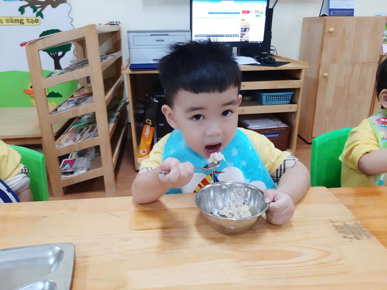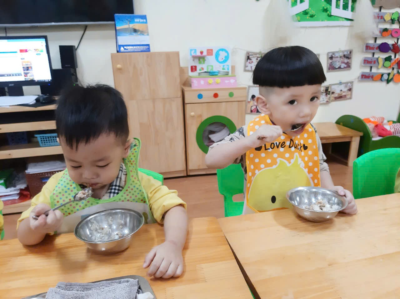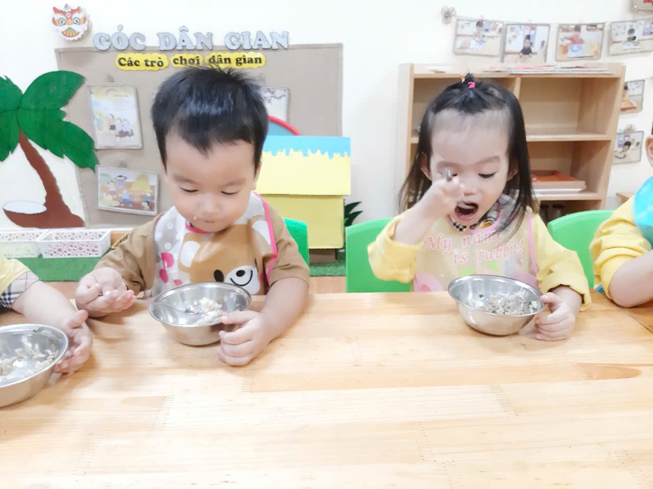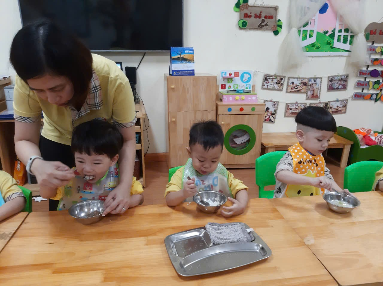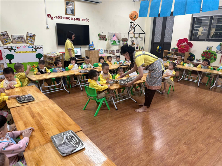 “Bữa ăn trưa vui vẻ” của các con lớp Nhà trẻ D1