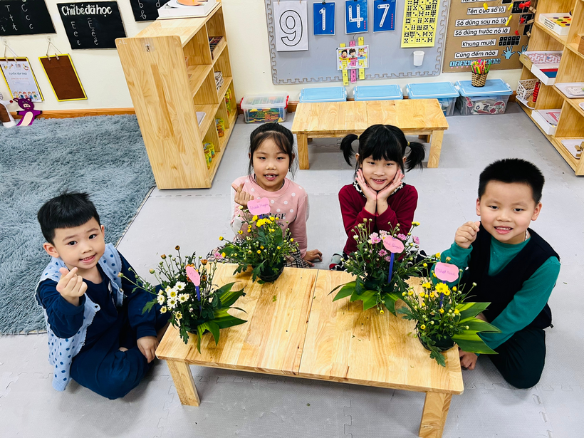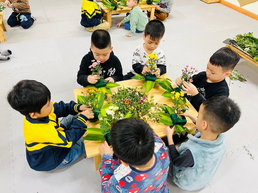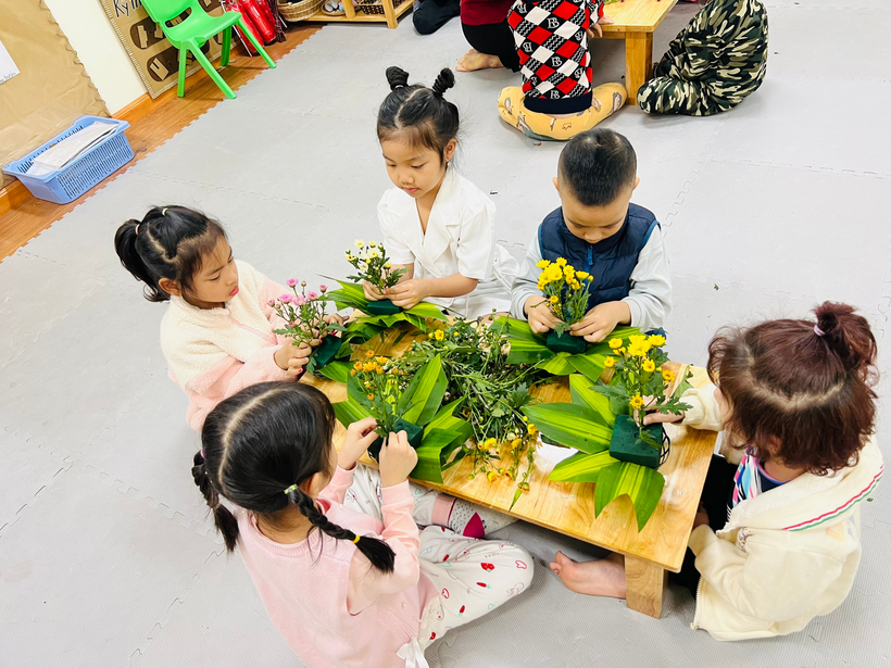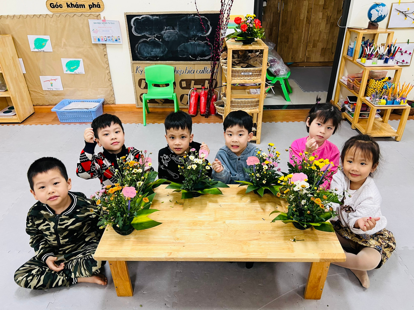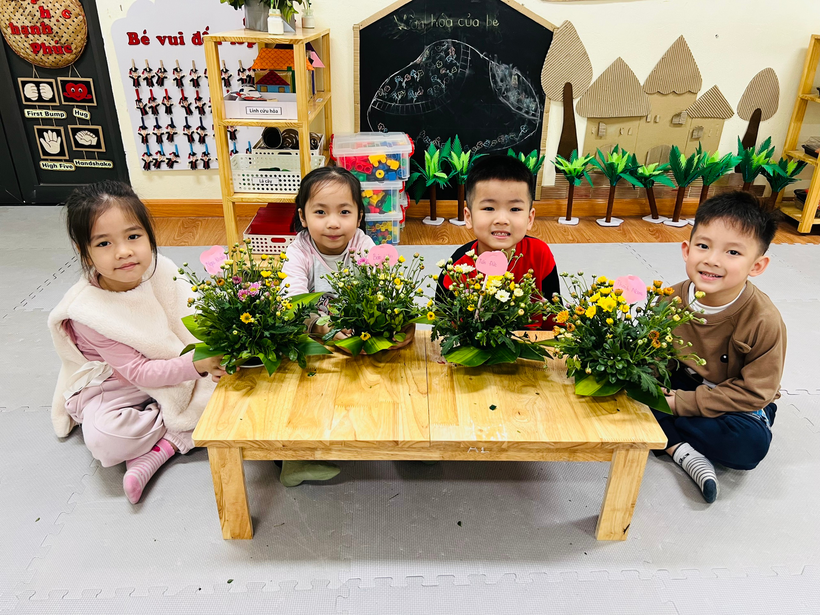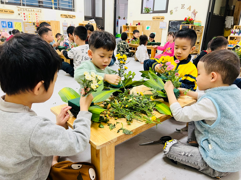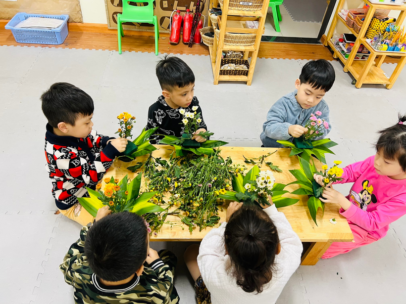 Các bé lớp A2, trường Mẫu giáo số 10 trổ tài cắm hoa - chào mừng ngày 8/3