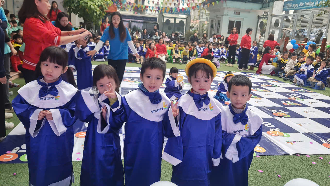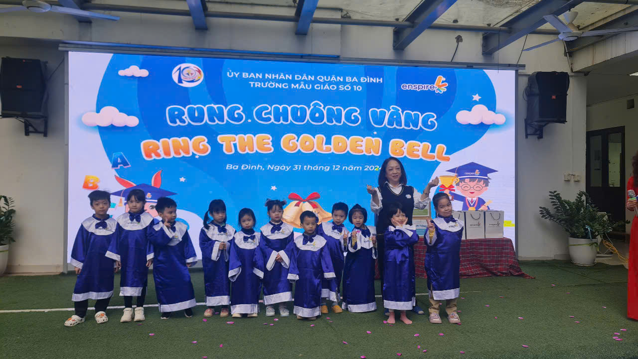 Hoà cùng không khí chào đón năm mới nhà trường phối hợp cùng Trung tâm Ngoại ngữ Enspire tổ chức chương trình “Rung chuông vàng – Tỏa sáng tài năng tiếng Anh cùng Enspire” cho các bé nhằm tạo không khí vui tươi, ấm áp cho các bé trong những ngày bước vào năm mới, mang đến cho trẻ niềm vui và những khám phá thú vị về thế giới xung quanh. Tạo sân chơi bổ ích cho trẻ, giúp trẻ nâng cao cơ hội thực hành trải nghiệm.18 bạn học sinh lớp Mẫu giáo nhỡ B3 đã vượt qua vòng loại để tham dự chương trình. Xin chúc mừng bạn Nguyễn Hà Thanh đã đạt Giải Nhất, 2 bạn Giải Nhì là Dương Nguyễn Gia Bảo và Đinh Ngọc Diệp và 2 bạn Giải Ba Nguyễn Đức An và Đỗ Anh Thư.