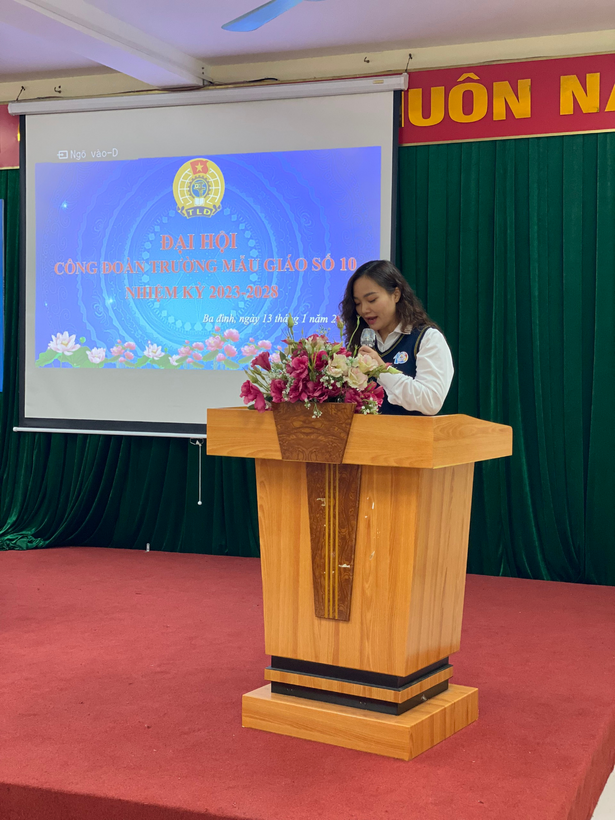 Thực hiện Kế hoạch số 82 ngày 09/05/2022 của LĐLĐ quận Ba Đình về tổ chức Đại hội Công đoàn cơ sở tiến tới Đại hội Công đoàn quận Ba Đình lần thứ XI, nhiệm kỳ 2023- 2028, ngày 13/1/2023 Công đoàn Trường Mẫu giáo Số 10 đã tổ chức thành công Đại hội Công đoàn nhiệm kỳ 2023- 2028.