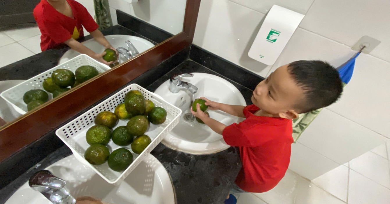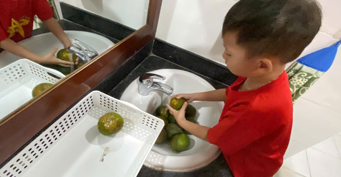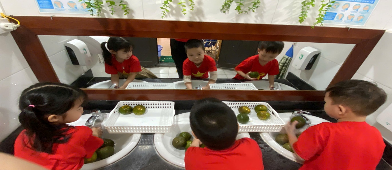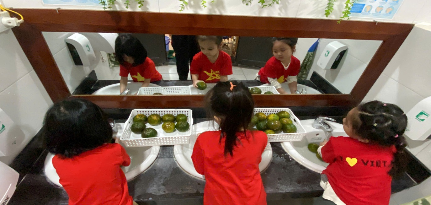 Ảnh: Các con rửa cam chuẩn bị cho hoạt động
