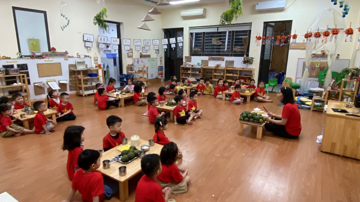 Hoạt động trải nghiệm "Vắt nước cam" của các bé lớp B3 Trường mẫu giáo số 10.