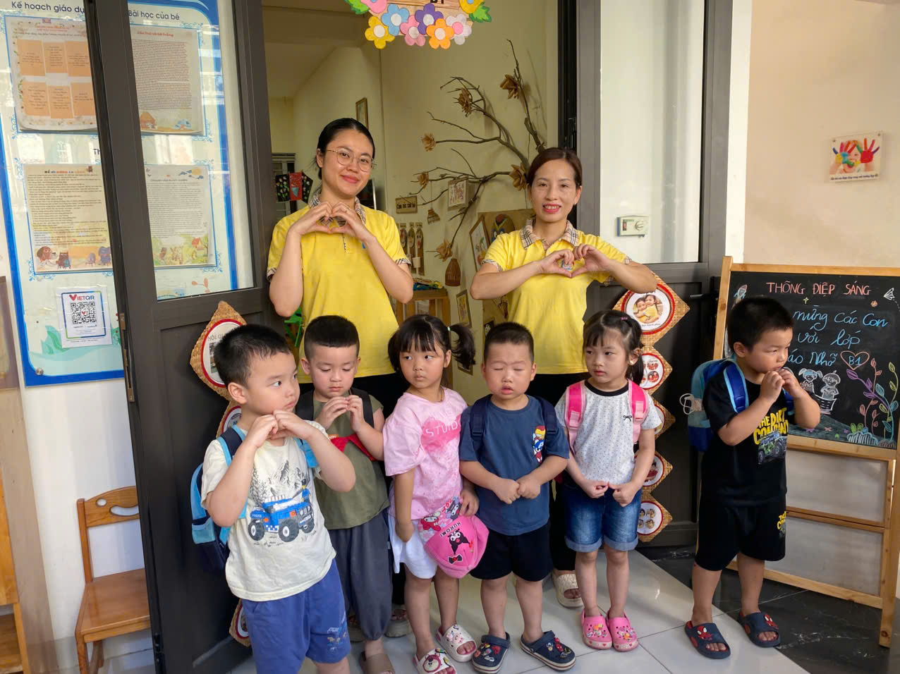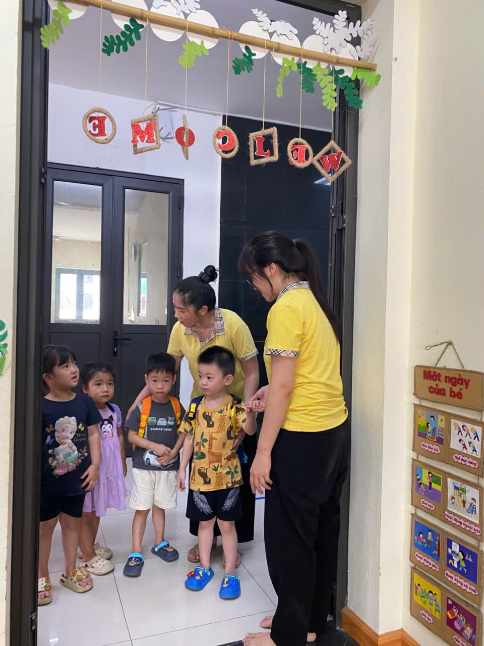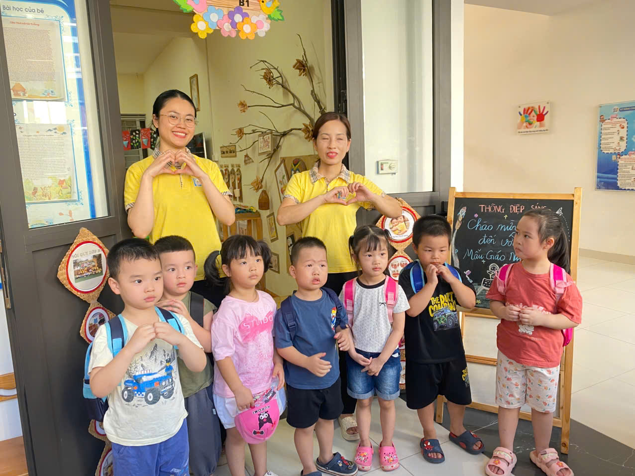 Các cô lớp MGN B1 hân hoan chào đón các con