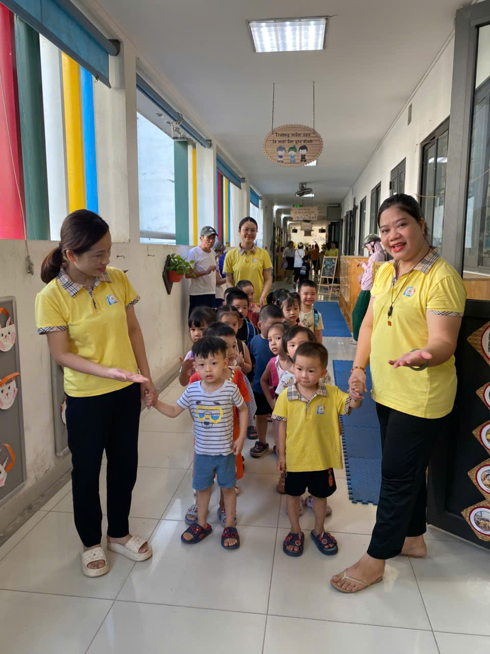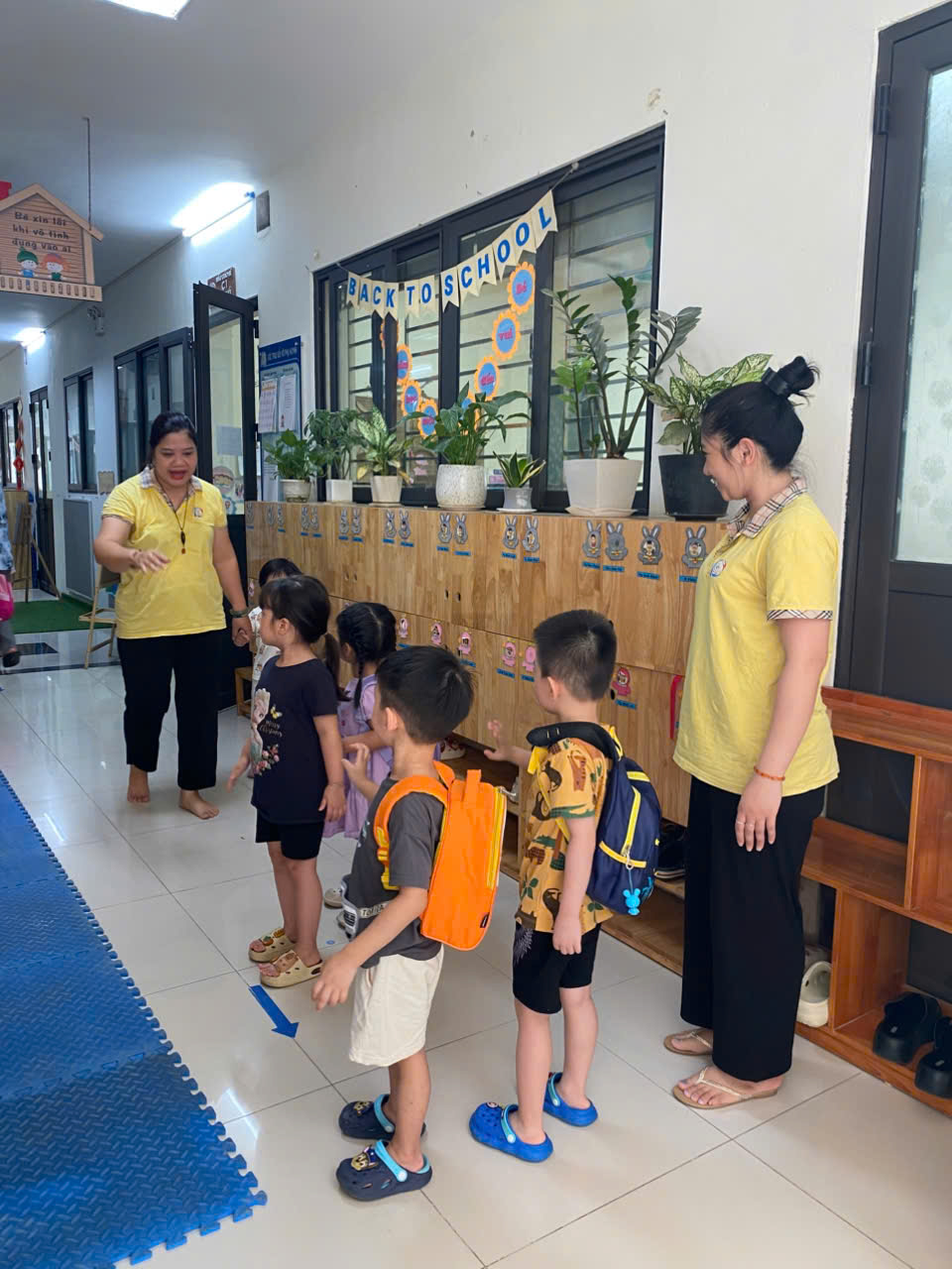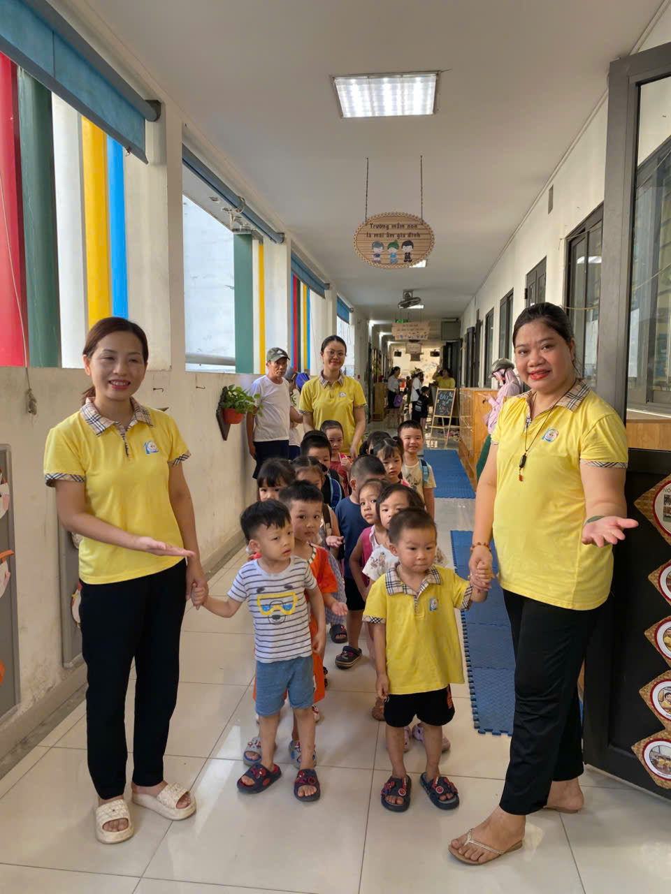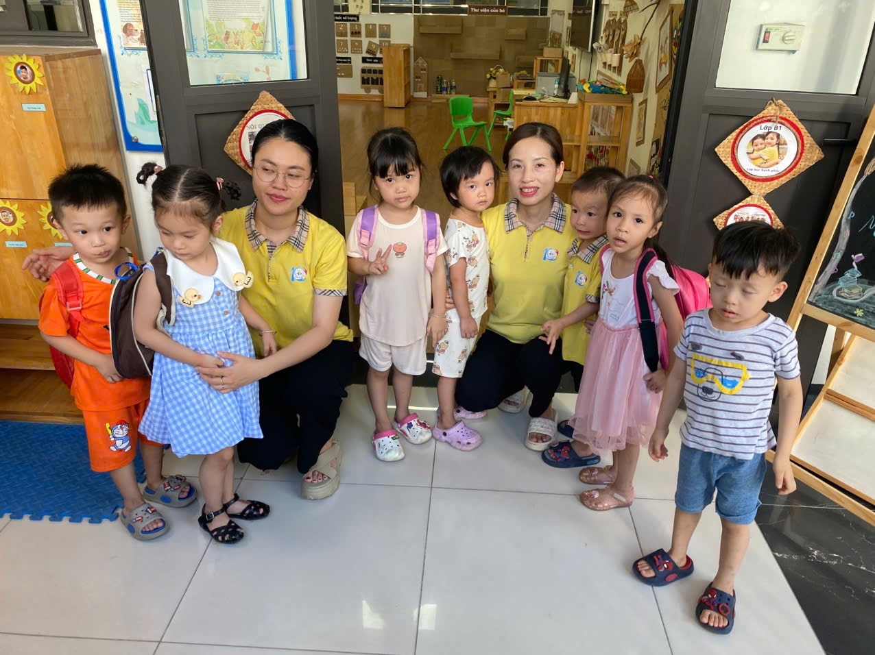Các cô lớp MGN B1 hân hoan chào đón các con