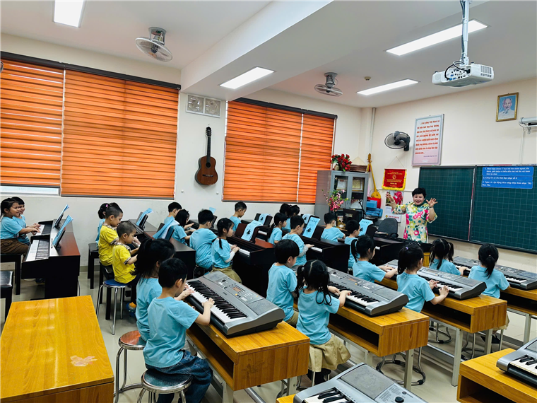 Hình ảnh: Các con trải nghiệm phòng âm nhạc