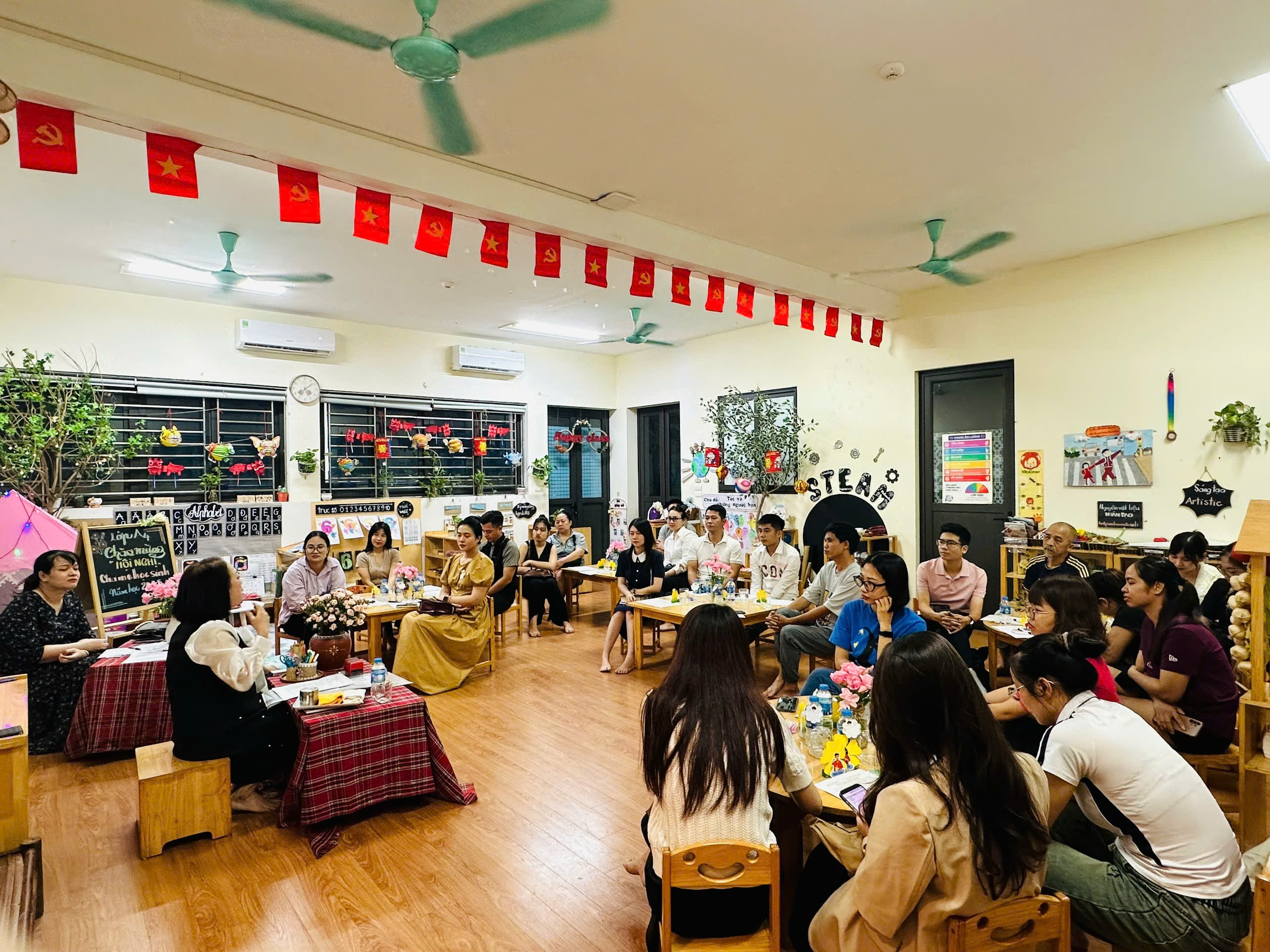 Sự phối hợp giữa gia đình và nhà trường: Trong buổi họp, giáo viên đã trao đổi với phụ huynh về mục tiêu rèn kỹ năng, hình thành thói quen tốt cho trẻ như: tự tin giao tiếp, biết giữ gìn vệ sinh, tuân thủ nề nếp lớp học, phát triển kỹ năng hợp tác và khả năng sáng tạo. Sự phối hợp chặt chẽ giữa gia đình và nhà trường sẽ là yếu tố quan trọng để trẻ phát triển toàn diện cả về thể chất, trí tuệ, tình cảm và kỹ năng xã hội.