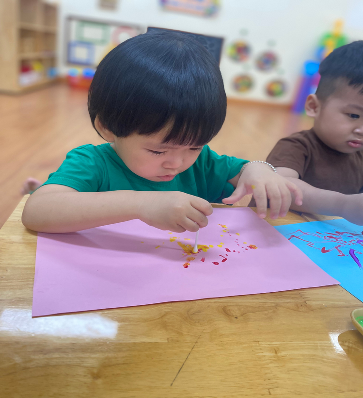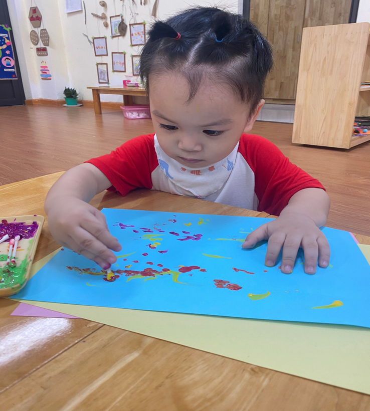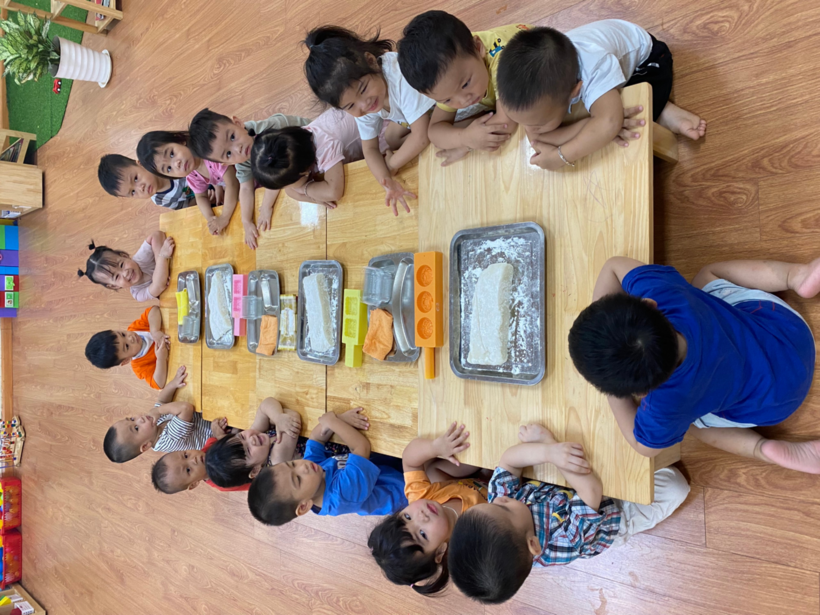 Cũng ngay tại sân trường các bé được nghe hướng dẫn về tò hè, được xem nghệ nhân nặn tò he rất khéo léo. Không những thế các bé còn được trải nghiệm nặn tò he quả hồng ngay chính lớp học của mình.