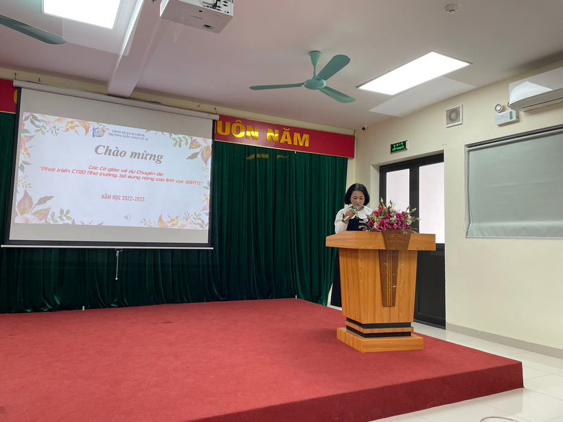 Đ/C Trần Thị Mai Anh - Hiệu trưởng nhà trường chia sẻ về kinh nghiệm “Phát triển Chương trình giáo dục tại nhà trường”