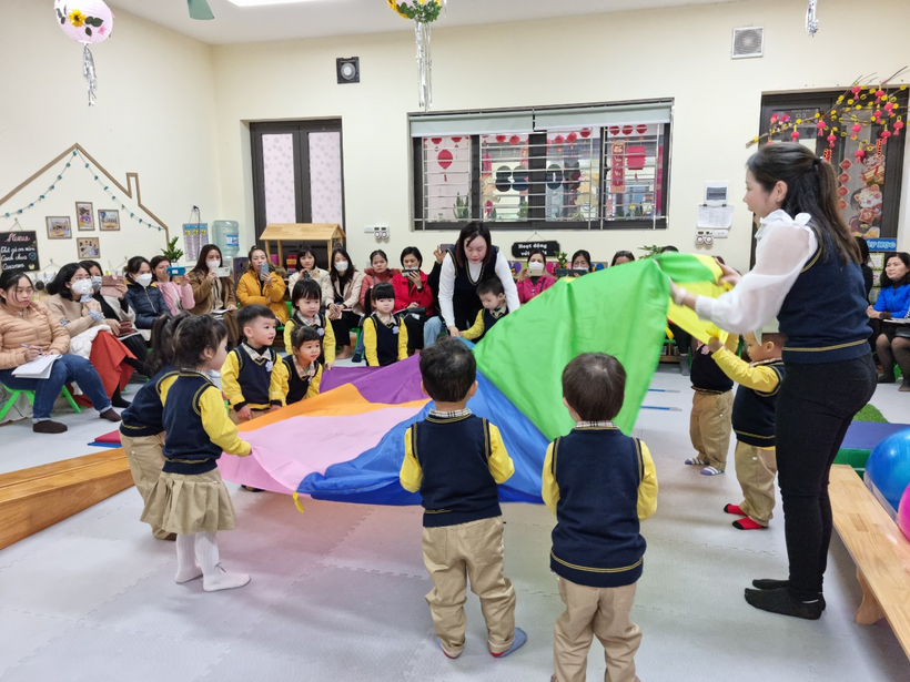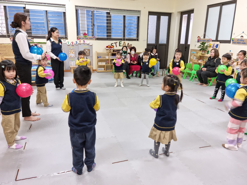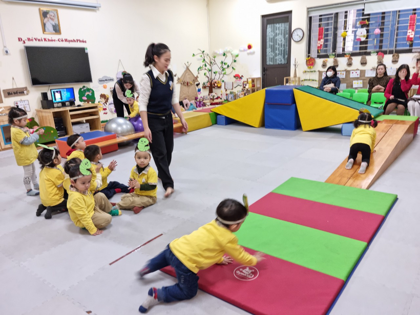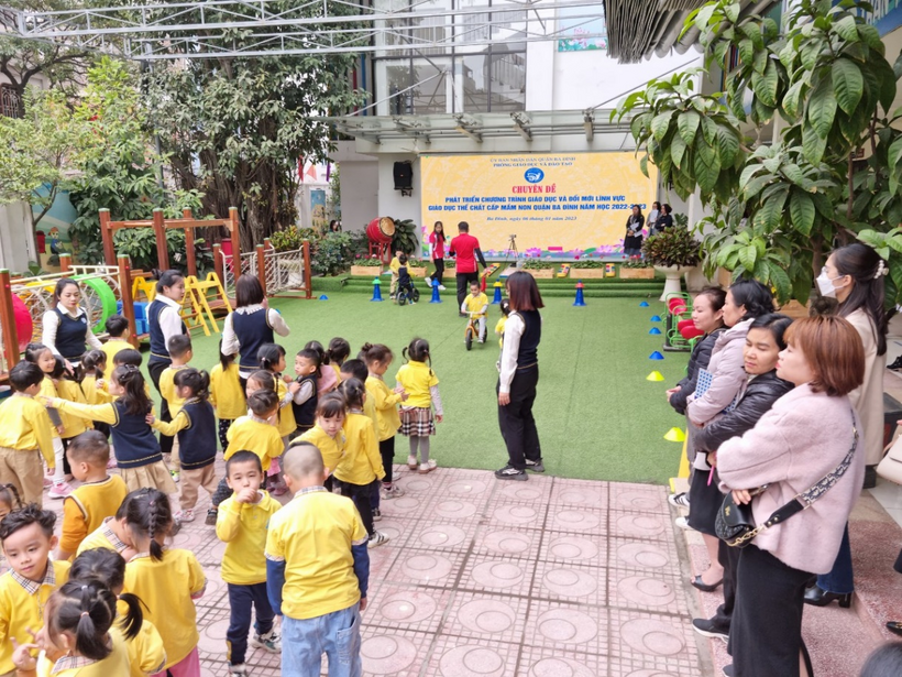 Sáng thứ sáu ngày 06/01/2023 thực hiện nhiệm vụ năm học 2022 – 2023, nhằm nâng cao chất lượng công tác quản lý và chỉ đạo phát triển chương trình giáo dục nhà trường trong các cơ sở giáo dục mầm non, Phòng GDĐT quận Ba Đình đã tổ chức kiến tập chuyên đề “Phát triển chương trình giáo dục nhà trường, bổ sung nâng cao lĩnh vực phát triển thể chất" tại trường Mẫu giáo Số 10.