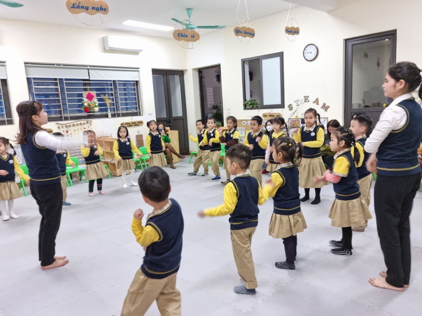 Giờ học vận động theo nhạc của lớp mẫu giáo lớn