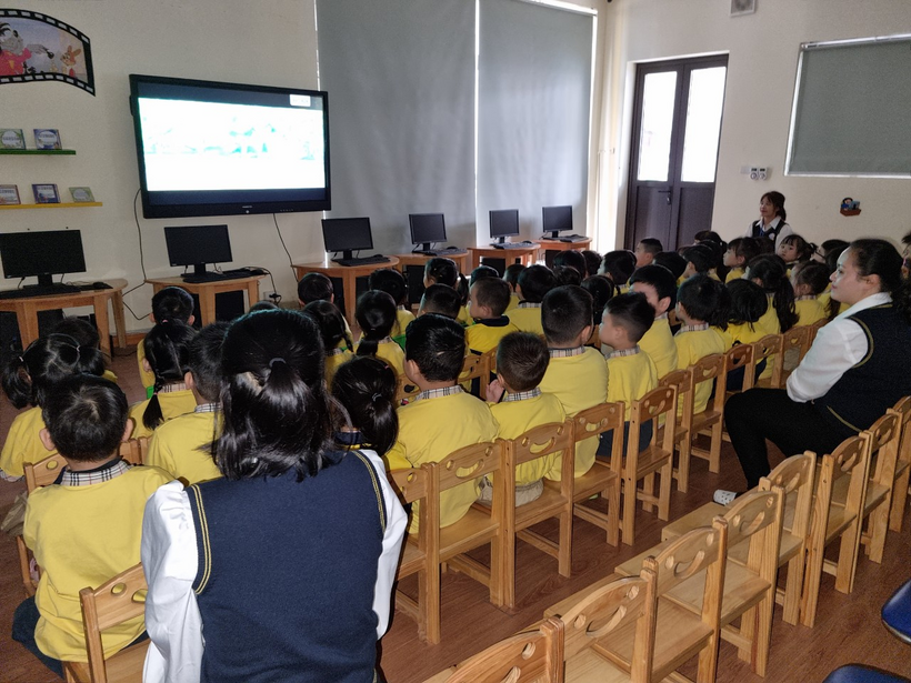 Hoạt động giao lưu liên khối: Xem phim lớp MGL A3 và MGB C2