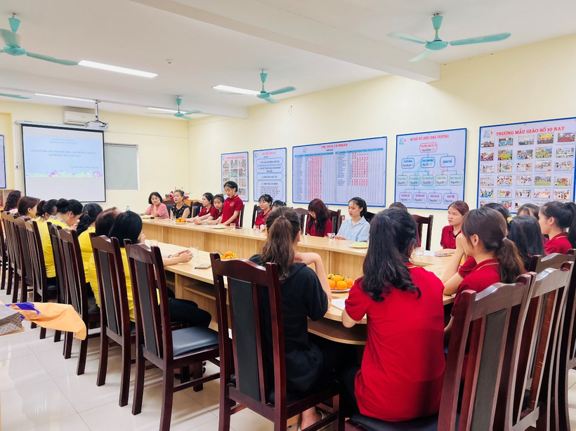 Thay mặt đoàn thực tập, Cô giáo Đỗ Thu Hoà, Trưởng đoàn thực tập sư phạm đã gửi lời cảm ơn sâu sắc tới Ban giám hiệu, các cô giáo trường Mẫu giáo Số 10 đã nhiệt tình giúp đỡ, hướng dẫn, hỗ trợ để các em có những thu hoạch và những kinh nghiệm trải nghiệm quý báu tại trường Mẫu giáo Số 10.