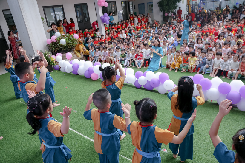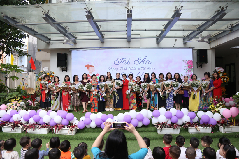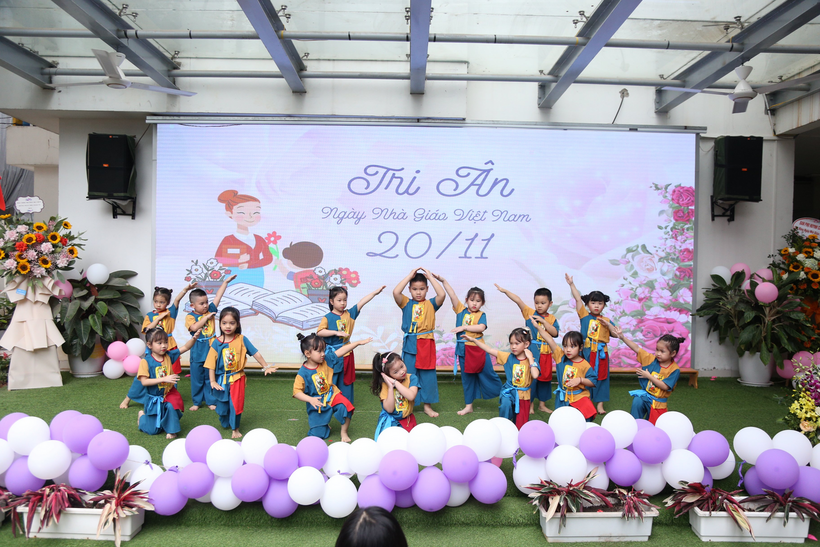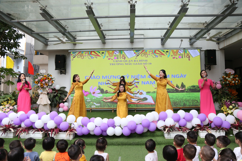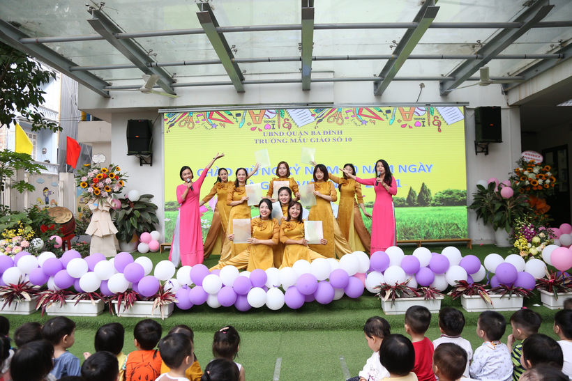 Các tiết mục văn nghệ xuyên suốt chương trình mang đến bầu không khí vui tươi, phấn khởi, không gian sân trường ngập tràn lời ca điệu nhạc thay cho những lời chúc chân thành của các con học sinh và các cô giáo Số 10 tri ân các thầy cô, các nhà giáo lão thành.