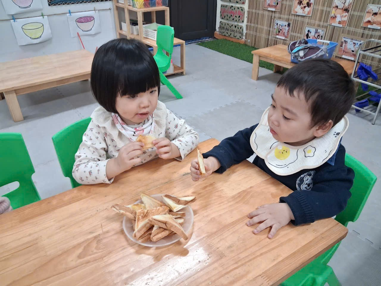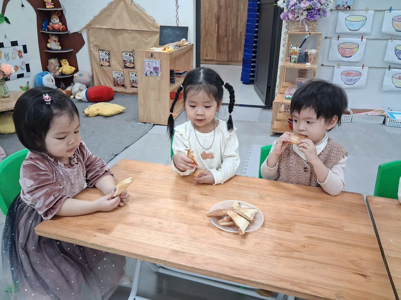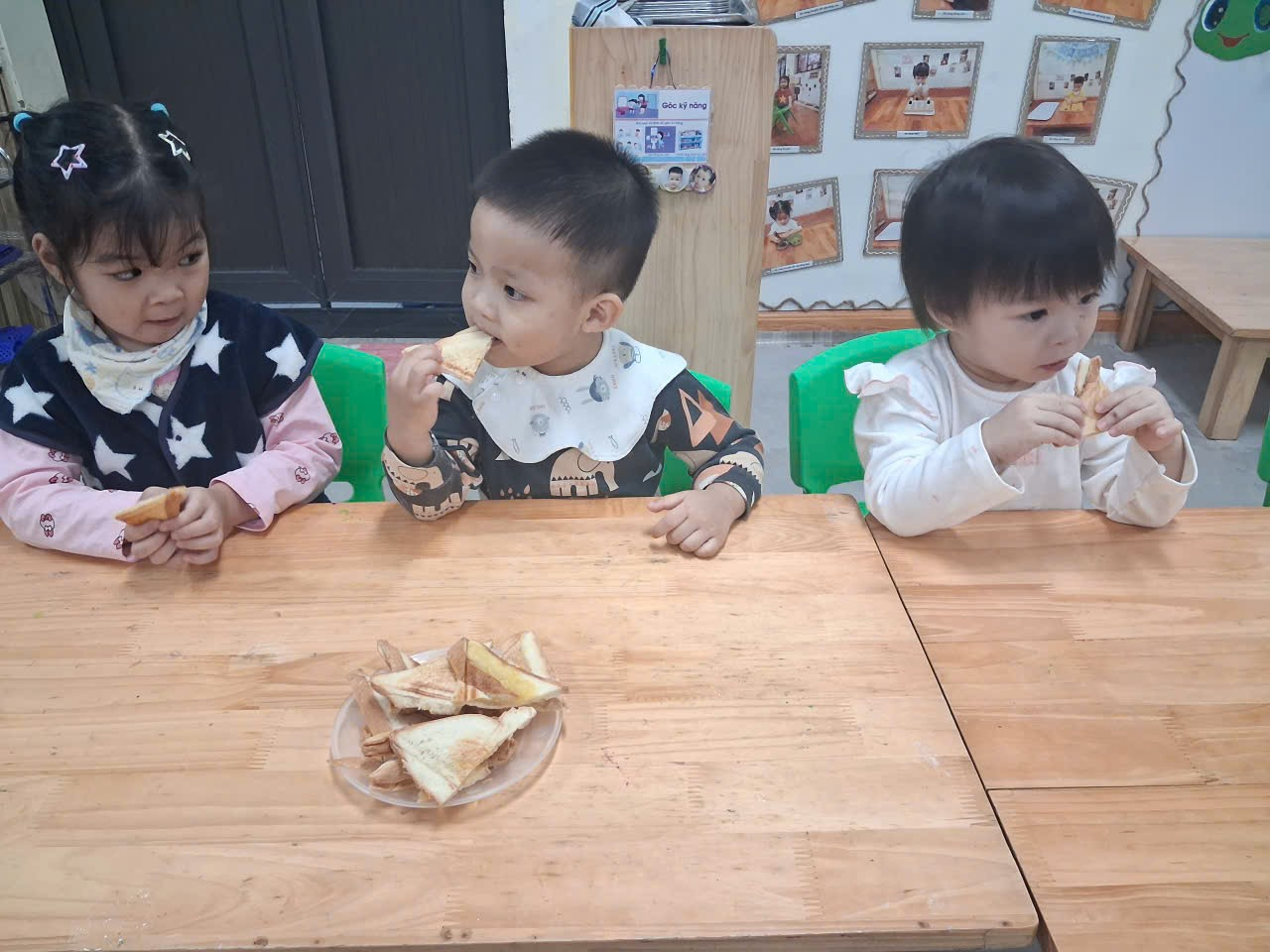Buổi trải nghiệm làm bánh mì phết bơ của các bạn nhỏ nhà trẻ D1 khép lại trong tiếng cười giòn tan và sự tự hào lấp lánh trong ánh mắt của từng bé. Mỗi chiếc bánh không chỉ là món ăn đơn giản mà còn là bước đầu để các con làm quen với kỹ năng nội trợ – một hành trình nhỏ nhưng đầy ý nghĩa. Hy vọng rằng những khoảnh khắc đáng yêu hôm nay sẽ là động lực để các con tiếp tục khám phá thế giới theo cách thật tự tin và vui vẻ.