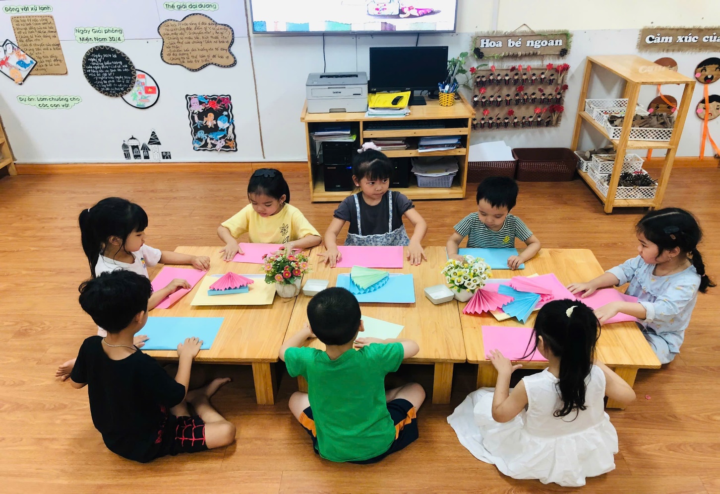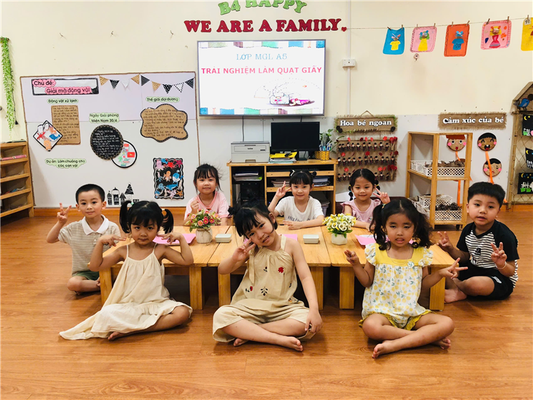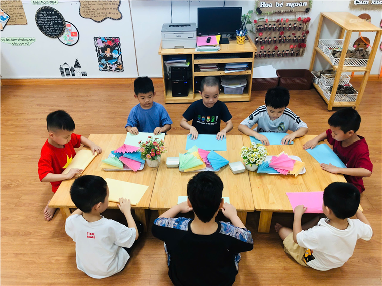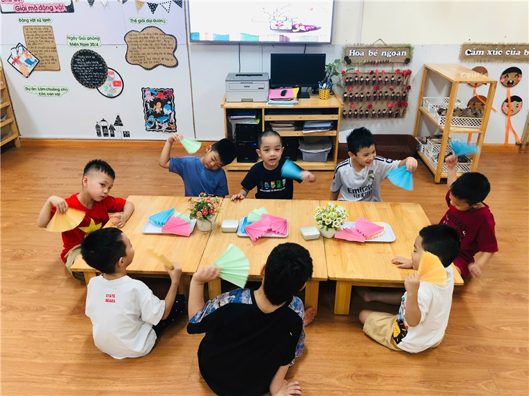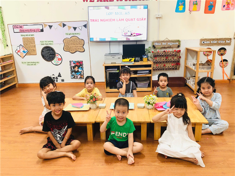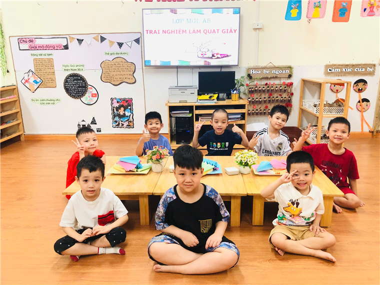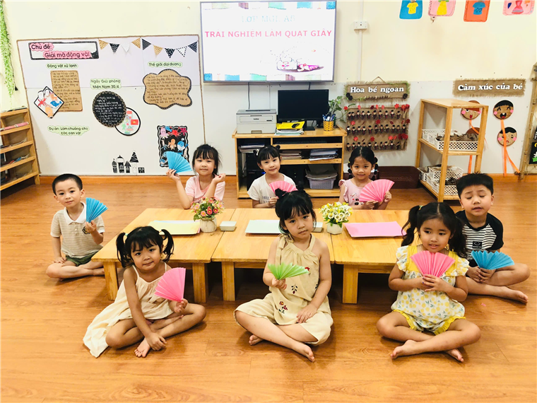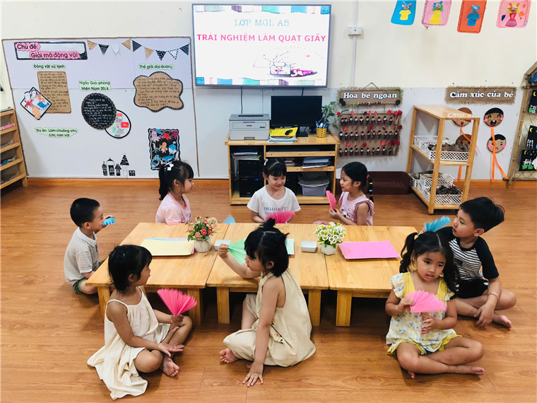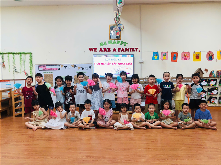Các bé lớp A5 với hoạt động trải nghiệm "Gấp quạt Giấy"