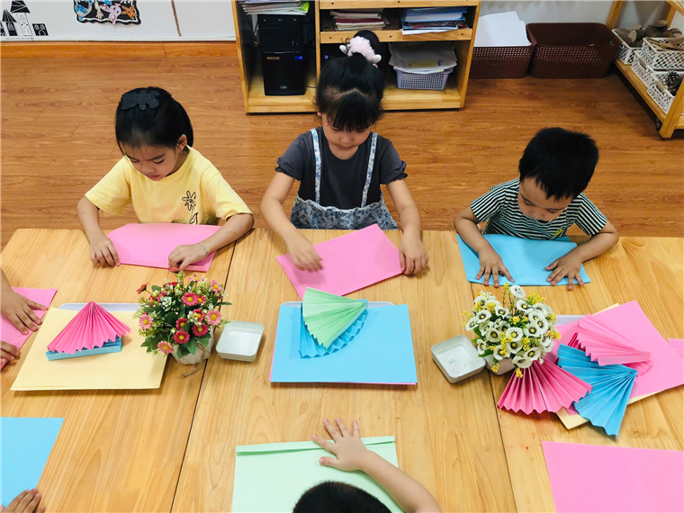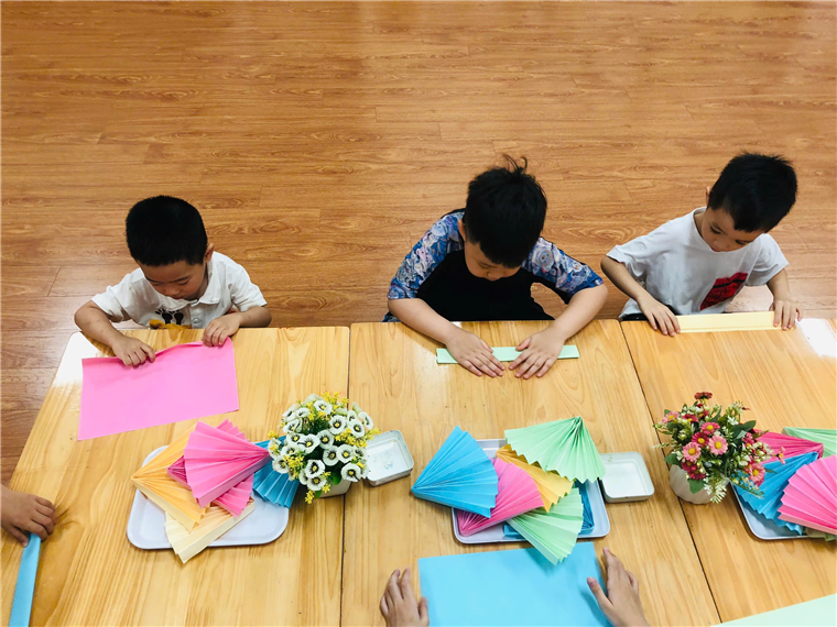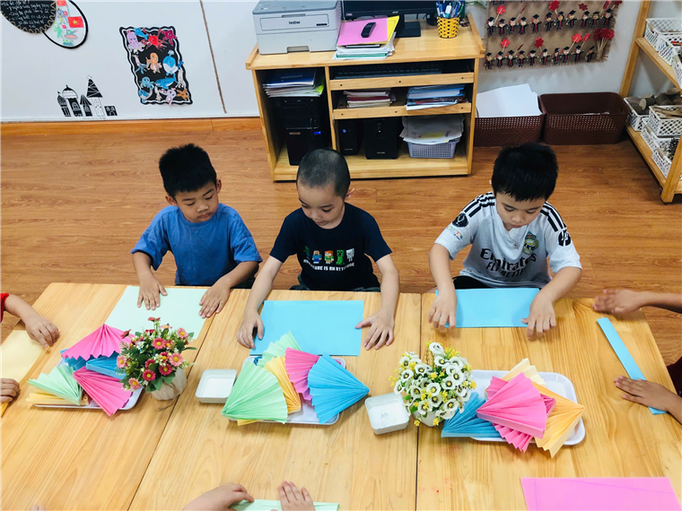 Sau đây là một số hình ảnh các bé trong buổi trải nghiệm “Gấp quạt giấy”: