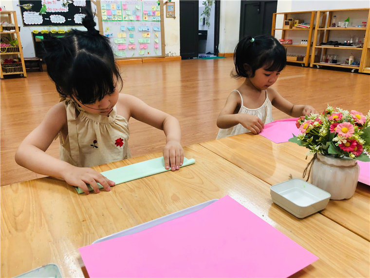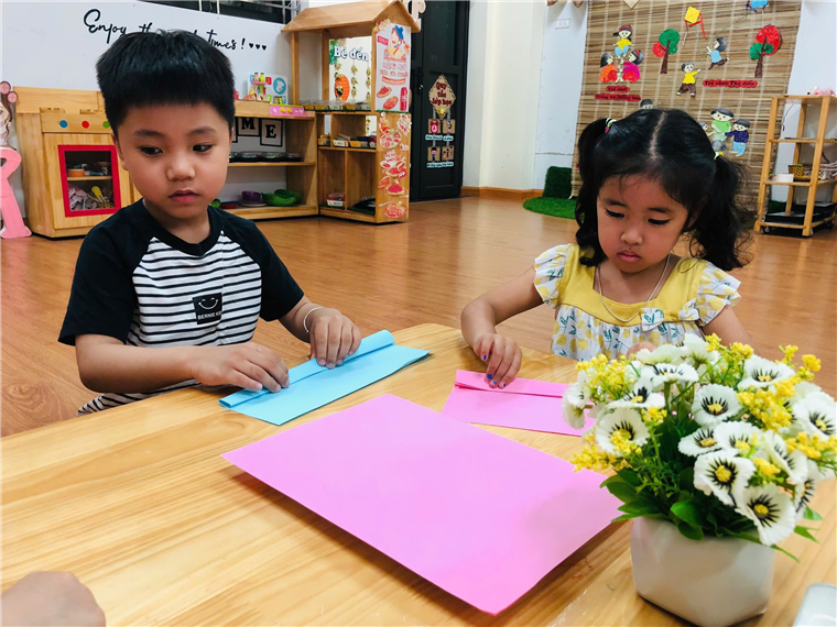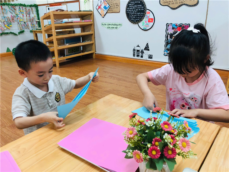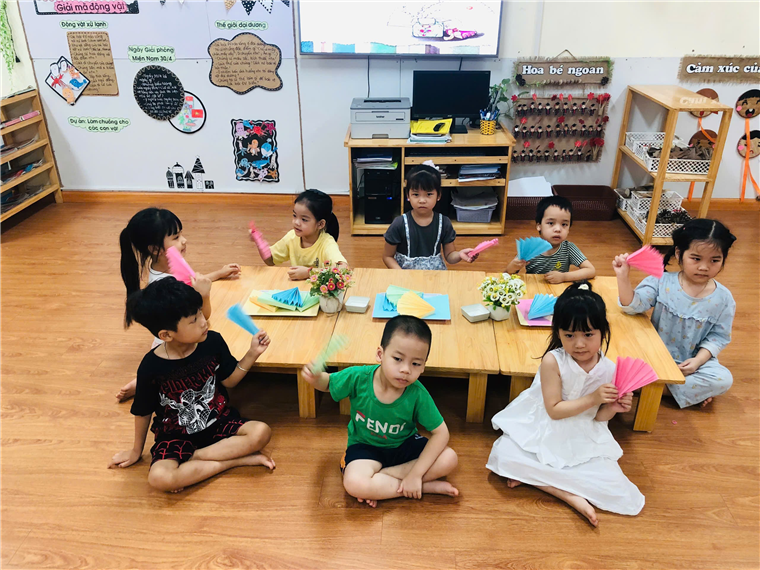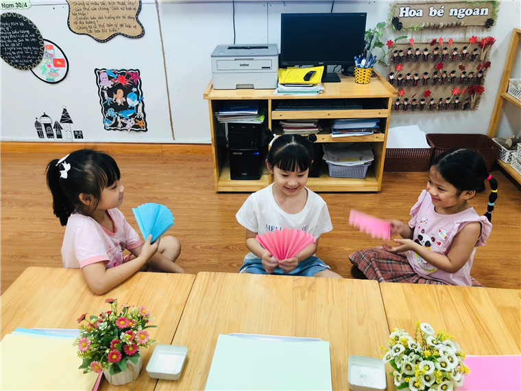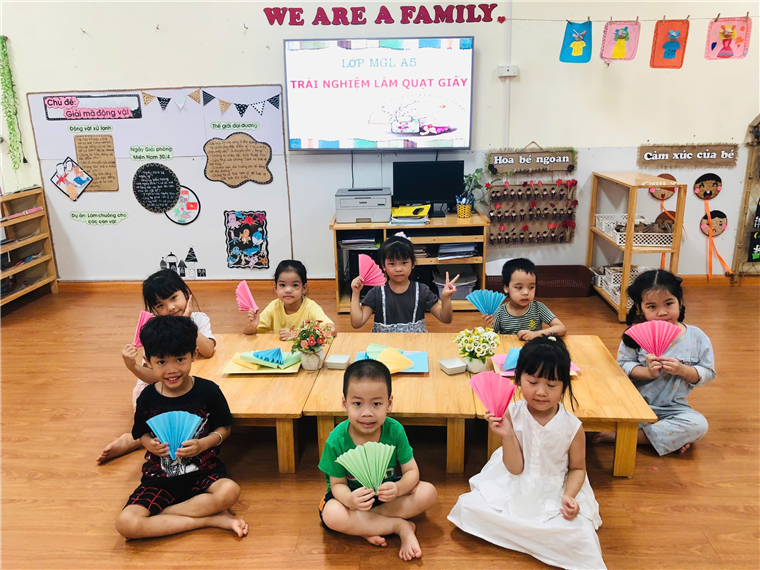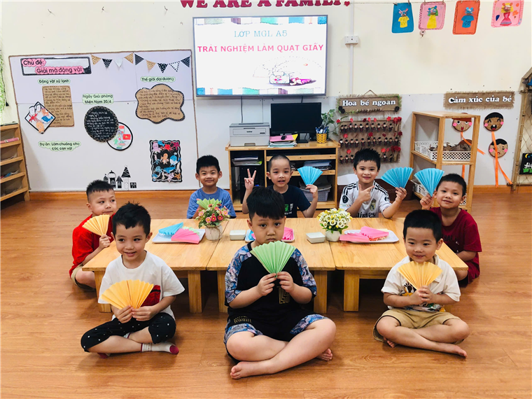 Gấp quạt giấy thổi bay cơn nóng mùa hè cùng các bé lớp MGL A5 trường Mẫu Giáo Số 10.
