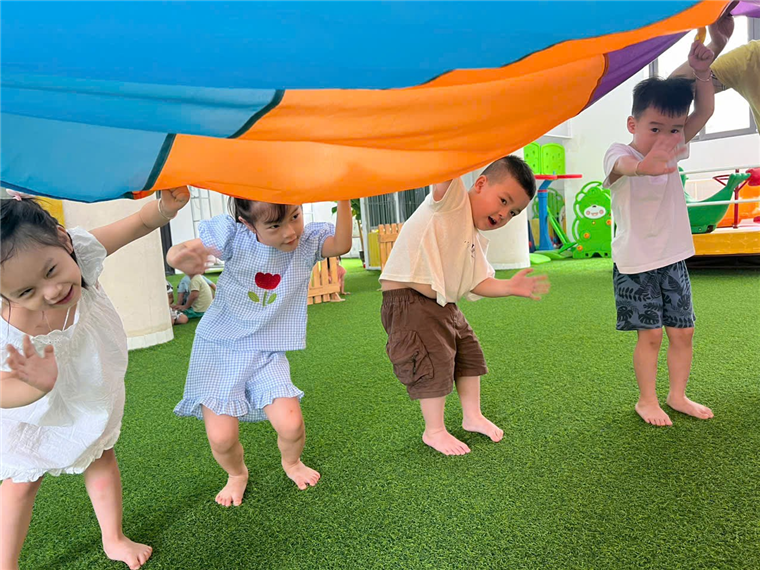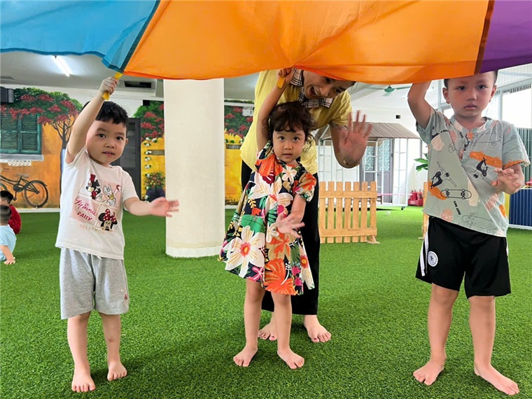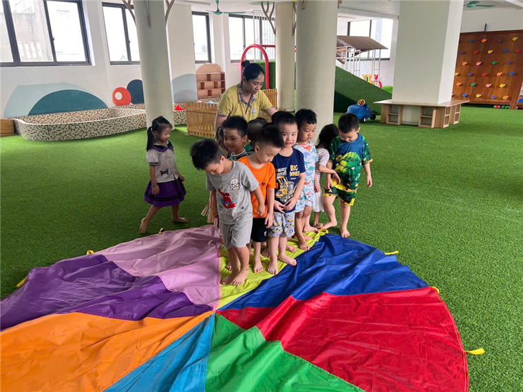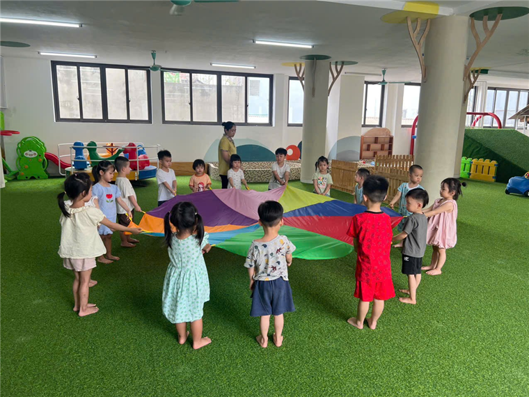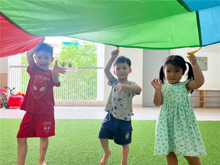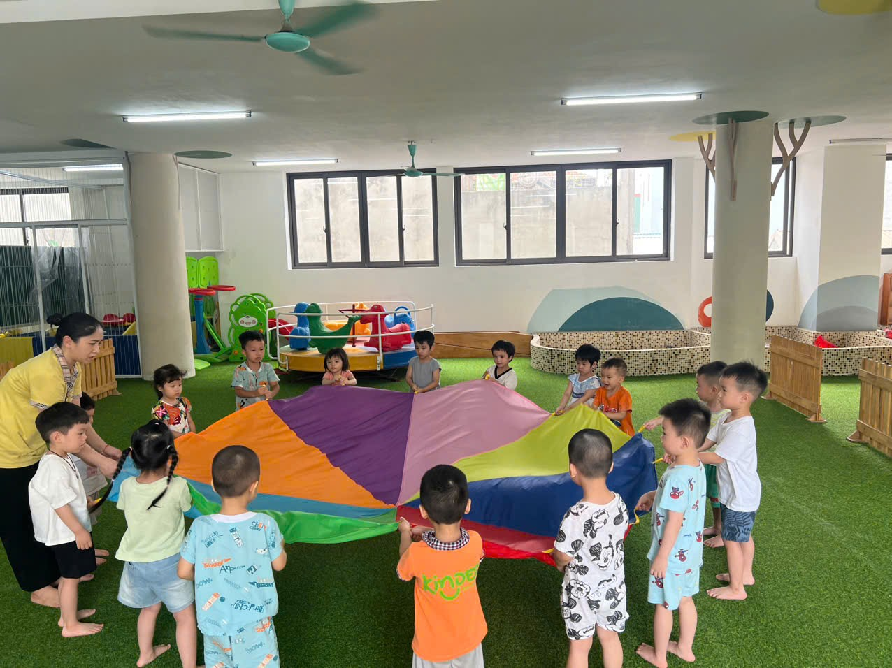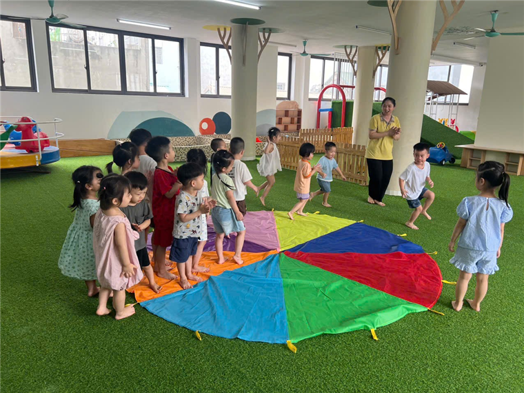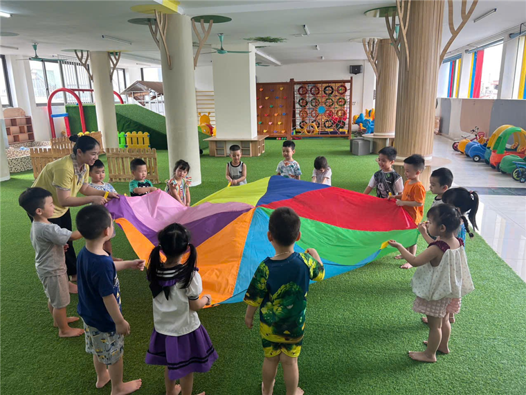 Chiếc Dù Sắc Màu” không chỉ mang lại niềm vui mà còn giúp trẻ hiểu thêm về tinh thần đoàn kết, gắn kết tình bạn và ý thức làm việc đồng đội. Mỗi lần chiếc dù được nâng lên, tạo thành những làn sóng màu sắc rực rỡ, niềm vui của các bé lại được thắp sáng, mang đến những khoảnh khắc đầy hứng khởi và kỳ diệu.