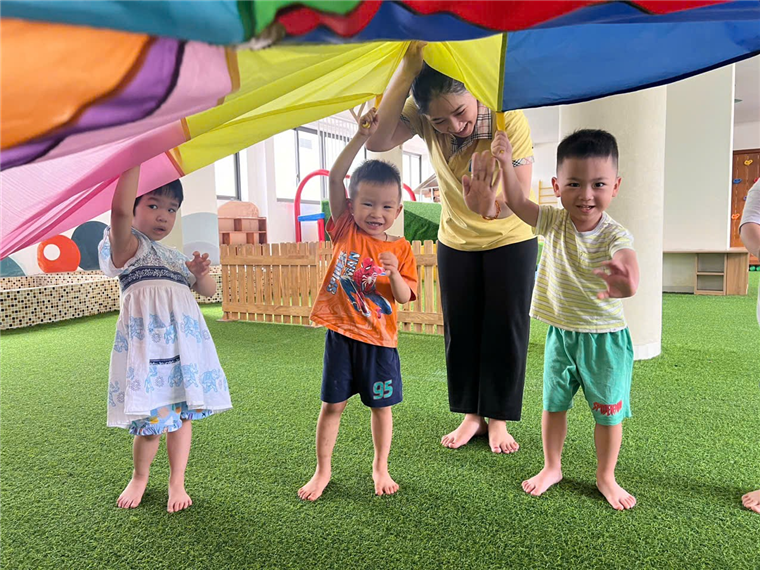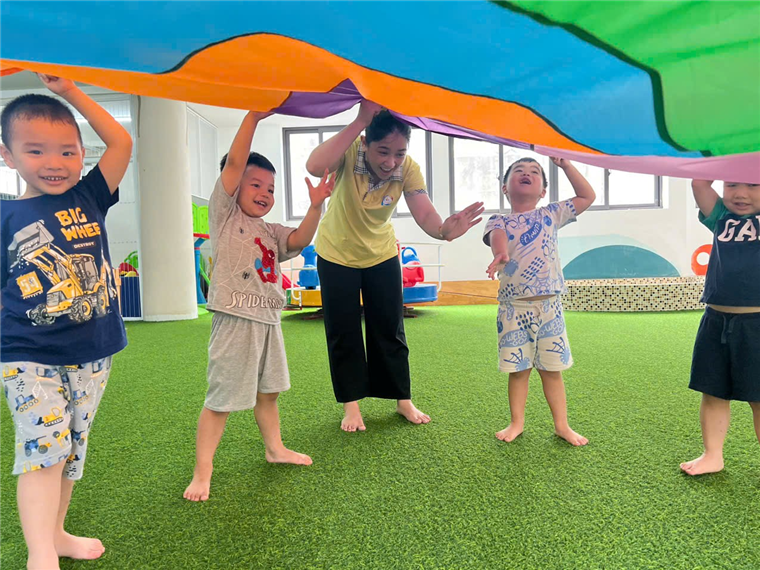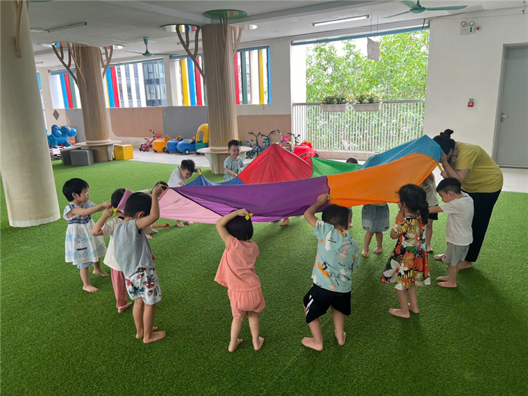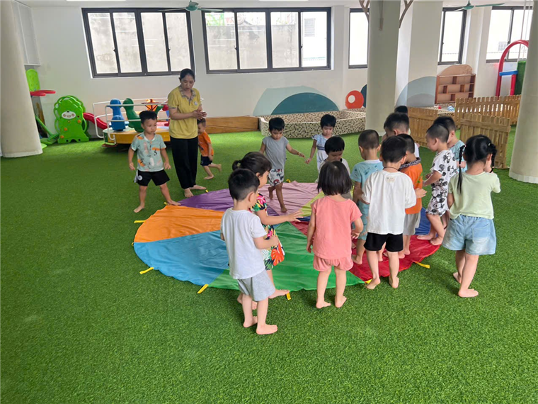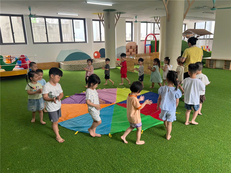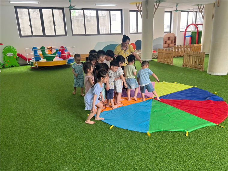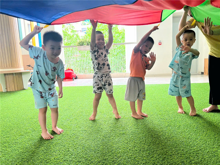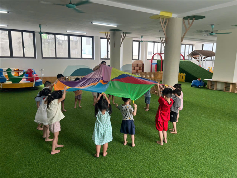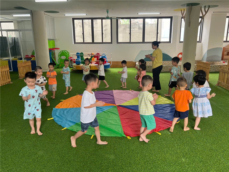 Chiếc Dù Sắc Màu” không chỉ mang lại niềm vui mà còn giúp trẻ hiểu thêm về tinh thần đoàn kết, gắn kết tình bạn và ý thức làm việc đồng đội. Mỗi lần chiếc dù được nâng lên, tạo thành những làn sóng màu sắc rực rỡ, niềm vui của các bé lại được thắp sáng, mang đến những khoảnh khắc đầy hứng khởi và kỳ diệu.
