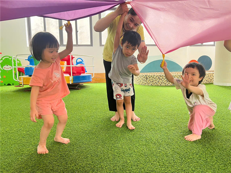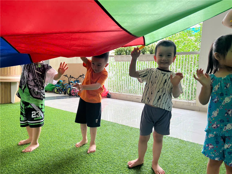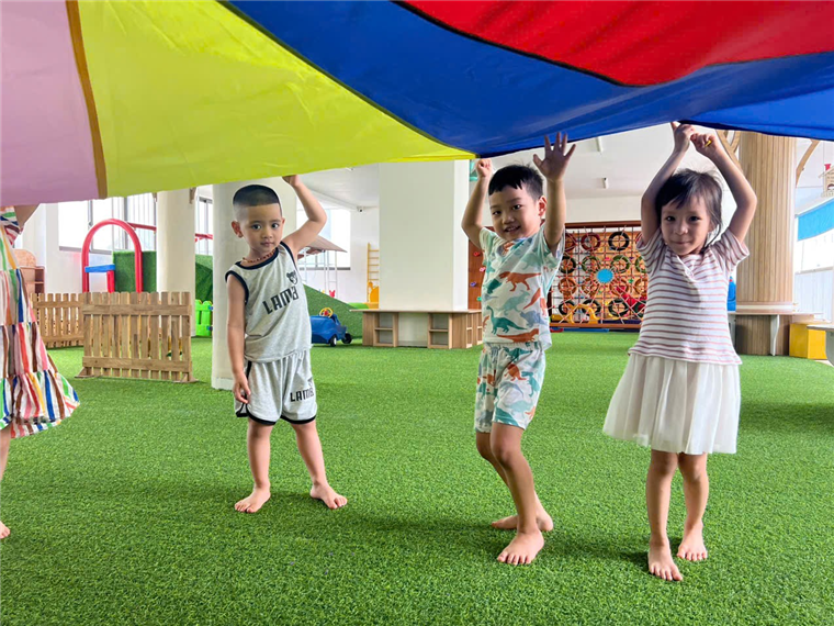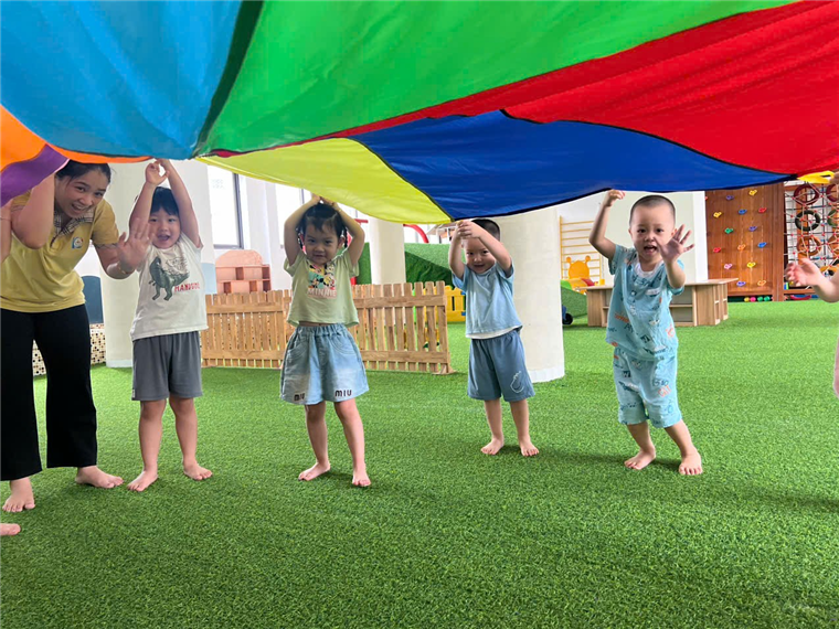 Hoạt động ngoài trời là một phần quan trọng trong giáo dục mầm non. Hôm nay, các bạn nhỏ lớp Mẫu giáo bé C1 cùng các bạn nhỏ lớp Mẫu giáo bé C2 đã có một khoảng thời gian thật tuyệt vời với trò chơi “Chiếc Dù Sắc Màu” - một trò chơi tập thể vui nhộn và đầy màu sắc dành cho trẻ em. Trong trò chơi này, các bé cùng nhau nắm lấy các cạnh của chiếc dù lớn rực rỡ, phối hợp di chuyển để tạo ra những chuyển động thú vị. Chiếc dù được nhấc lên, hạ xuống, nhanh - chậm theo nhịp điệu, mang đến cho các bé những tràng cười giòn giã và niềm vui bất tận.