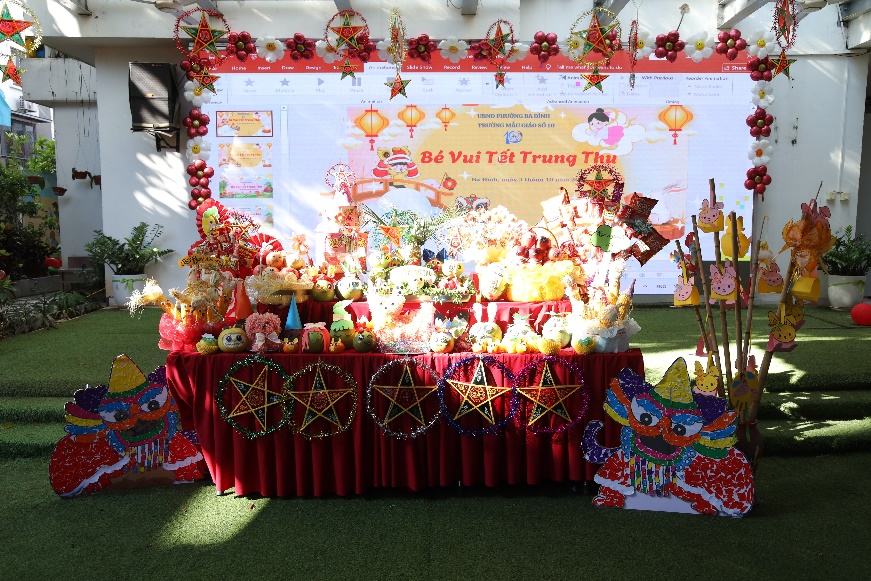 Mâm ngũ quả và sản phẩm sáng tạo của các bé Trường Mẫu giáo số 10
