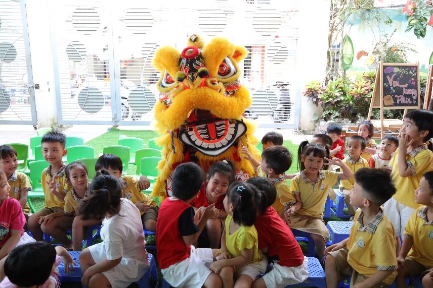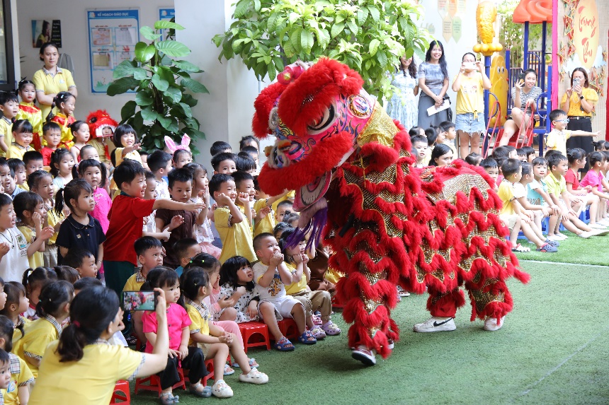 Kết thúc chương trình là tiết mục được mong chờ nhất của các bé: Múa lân.