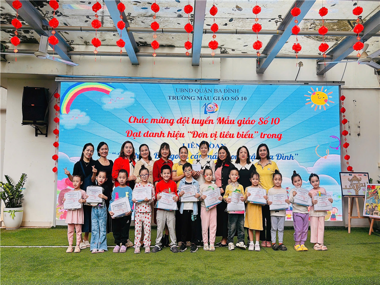 Tham dự liên hoan liên hoan “Bé khỏe, bé ngoan” có 12 bé khối Mẫu giáo lớn và 02 cô giáo tham gia. Cô và trò đã rất nỗ lực tham gia phần “Đồng diễn” và “Rung chuông vàng” Kết quả trường Mẫu giáo Số 10 đã xuất sắc lọt vào tốp 7 trường tiêu biểu xuất sắc nhất. Đây chính là phần thưởng xứng đáng cho sự nỗ lực của Cô và trò trường Mẫu giáo Số 10