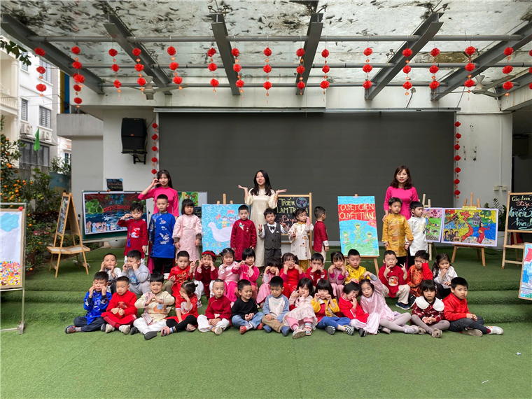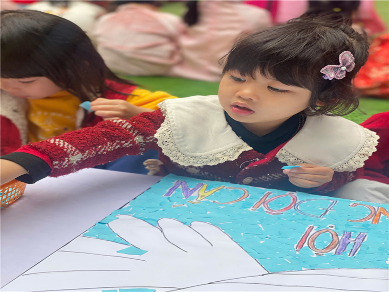 Trong không khí vui vẻ của ngày 8/3, các bạn nhỏ lớp B1 còn được tham gia triển lãm tranh với đề tài “Bé yêu hòa bình”. Các em đã cùng nhau hoàn thành hai bức tranh đặc biệt: “Chiến thắng”“Hòa bình”. Đây không chỉ là cơ hội để các em thể hiện tài năng nghệ thuật mà còn là dịp để các bạn hiểu sâu sắc hơn về giá trị của hòa bình và sự đoàn kết.