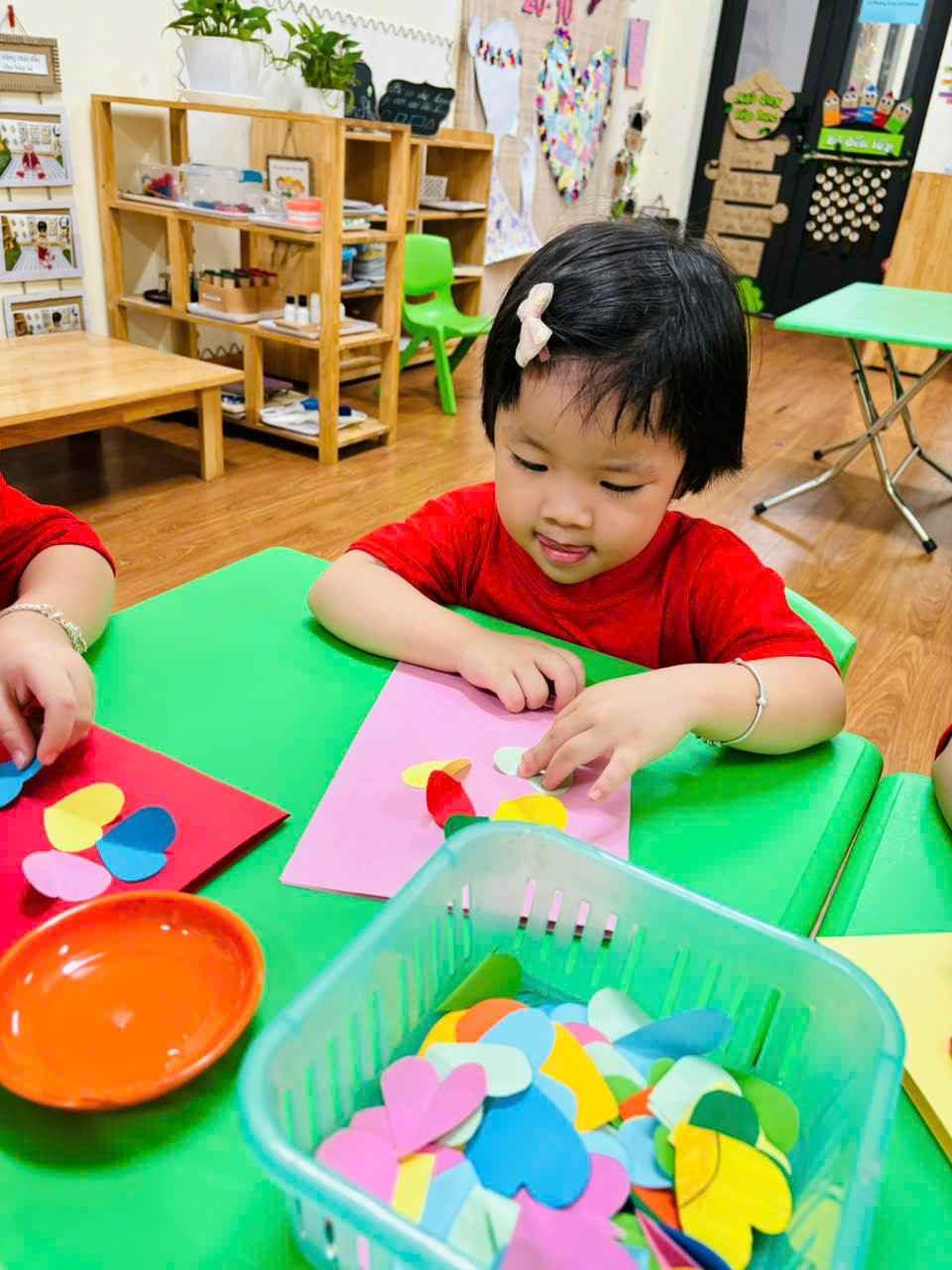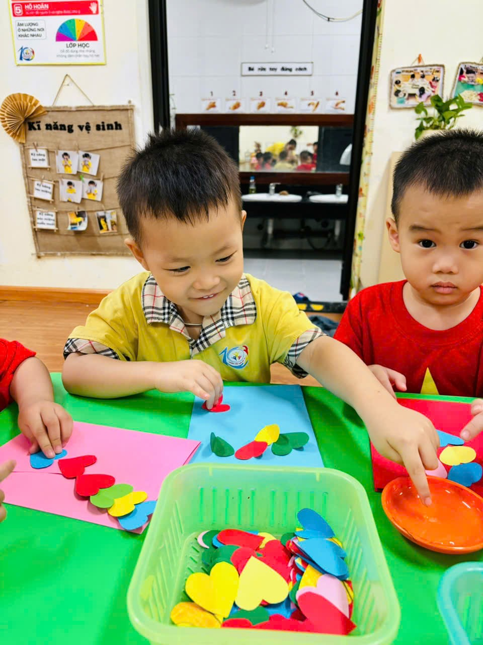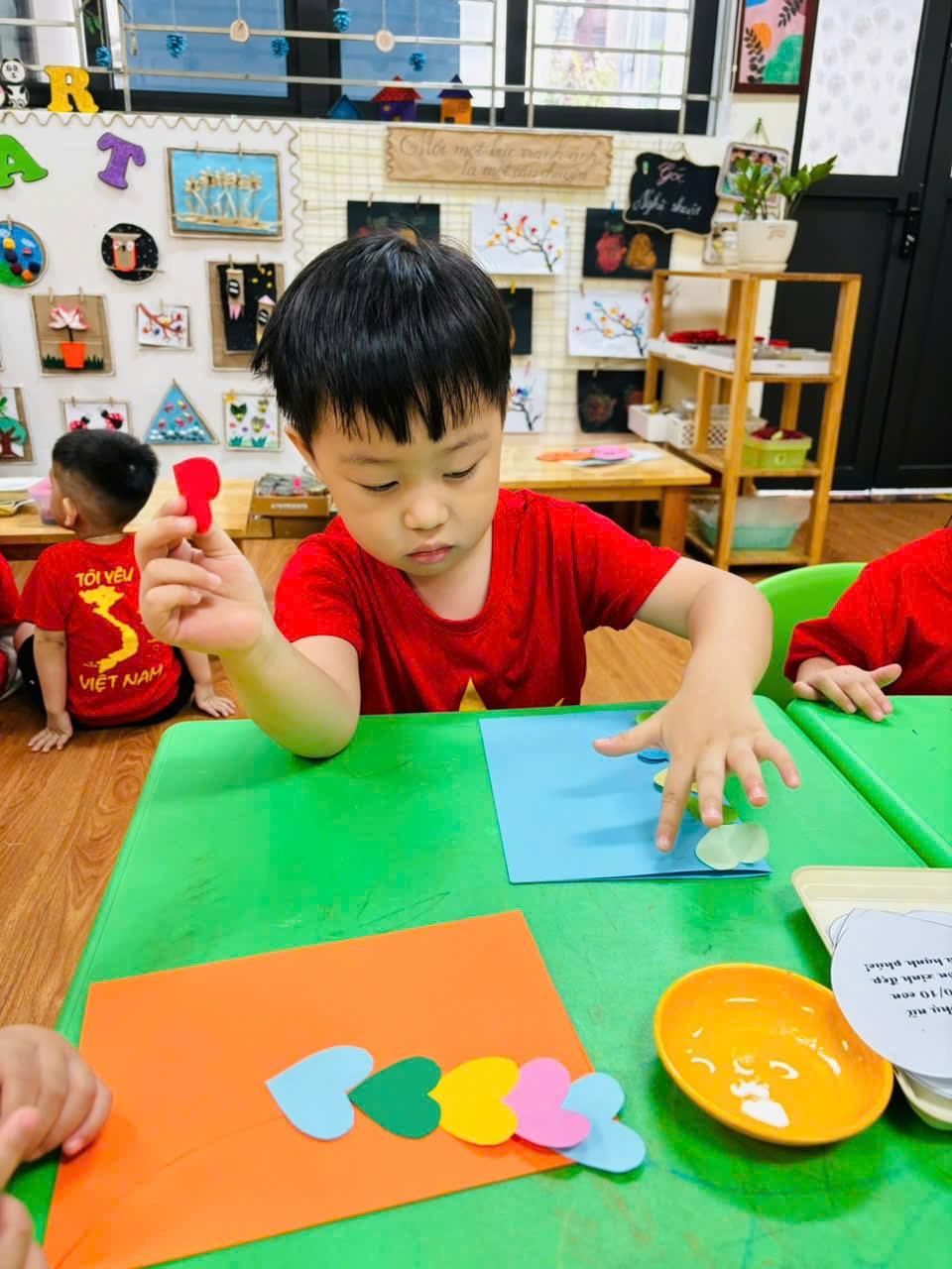 Các con lớp MGB C2 đã rất hào hứng đến lớp để được các cô hướng dẫn làm những tấm thiệp thật đẹp tặng mẹ nhân ngày 20/10.