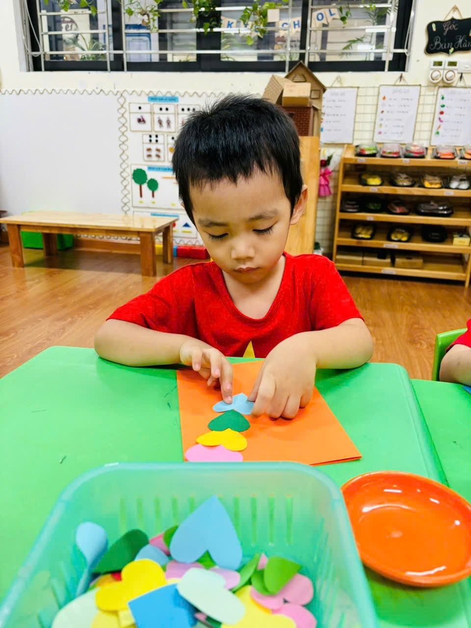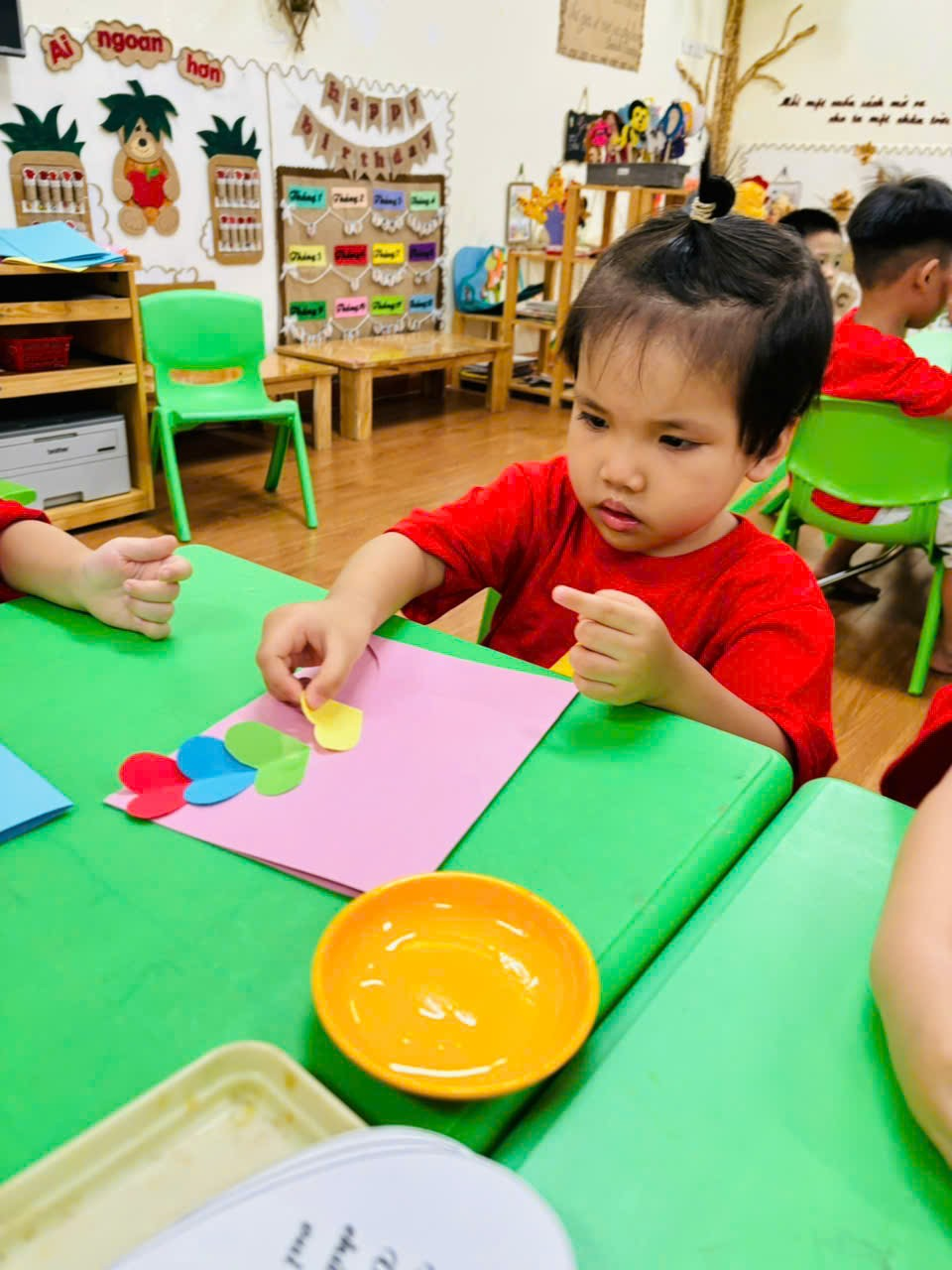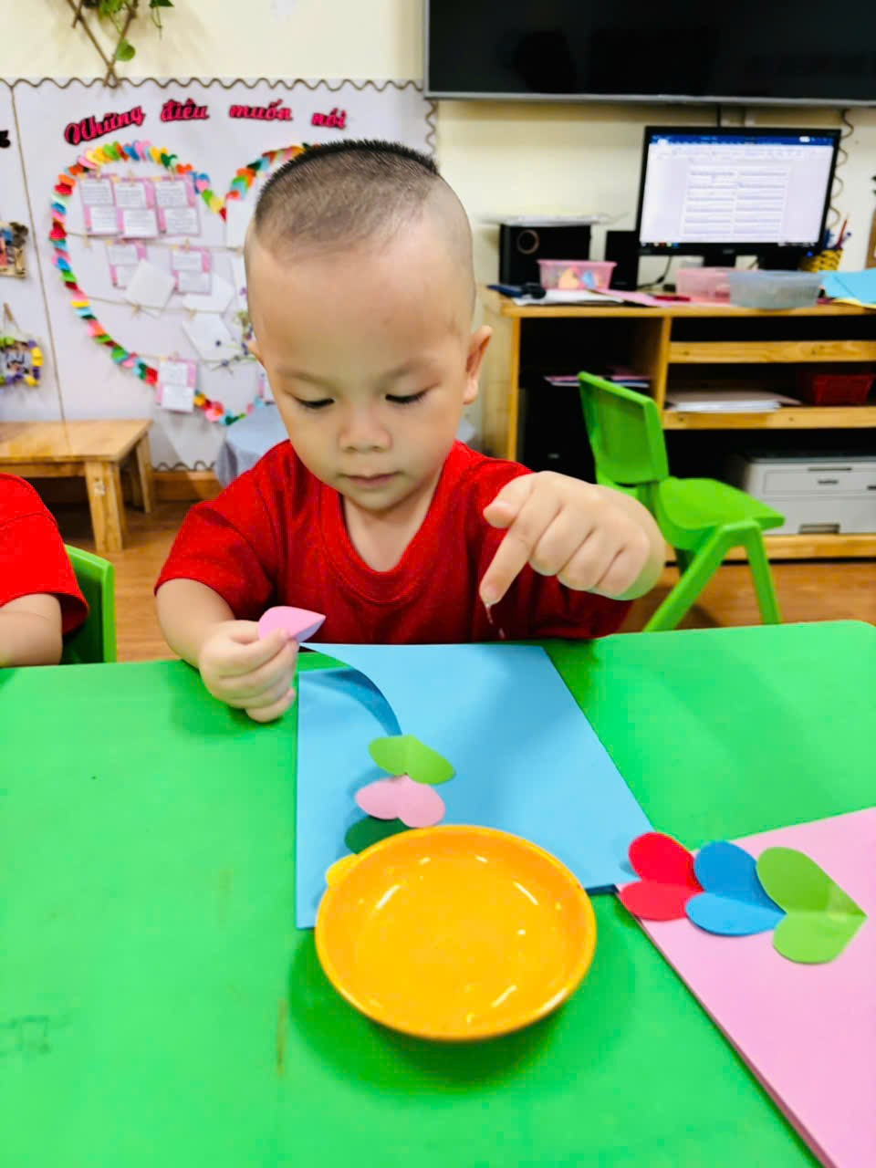 Các con lớp MGB C2 đã rất hào hứng đến lớp để được các cô hướng dẫn làm những tấm thiệp thật đẹp tặng mẹ nhân ngày 20/10.