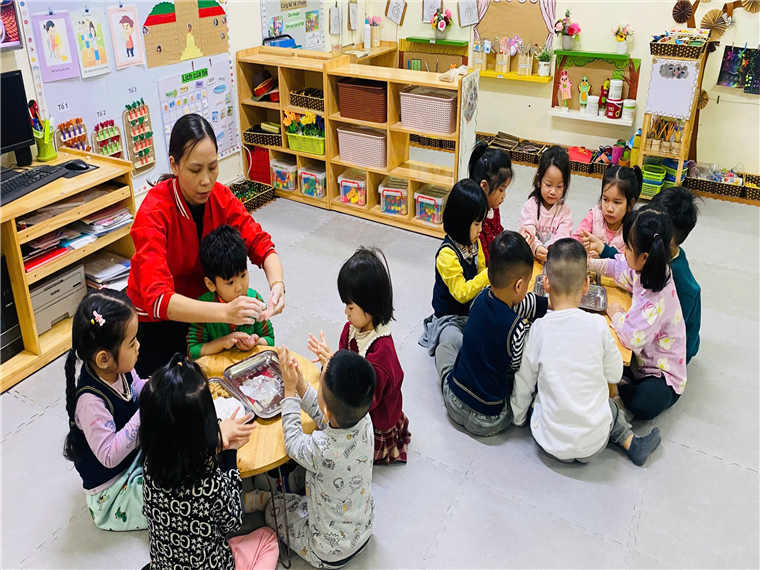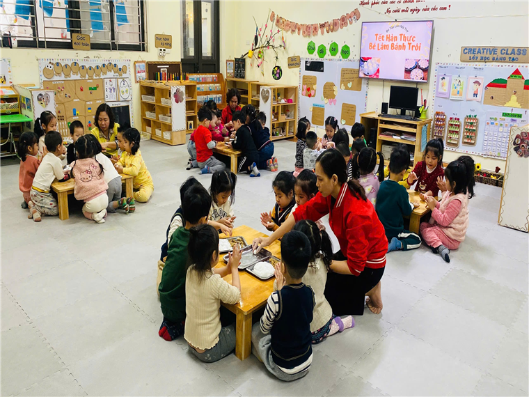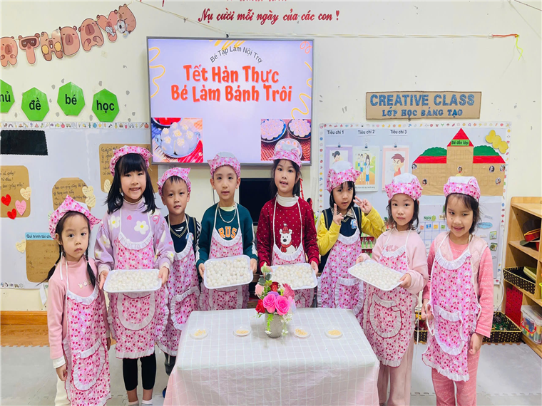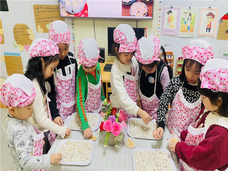 Qua hoạt động trải nghiệm nặn bánh trôi rèn cho trẻ sự khéo léo, linh hoạt của đôi bàn tay đồng thời giúp trẻ hiểu về phong tục truyền thống của quê hương.