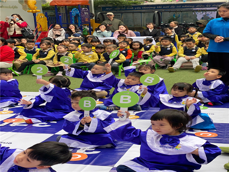 Sáng nay ngày 31 tháng 12 năm 2024. Các bạn lớp B1 rất haofh]ngs và phấn khởi được tham gia biểu diễn tiết mục " Trống cơm" để đón chào xuân mới 2025  và cuộc thi "Rung Chuông Vàng"   Các bạn học sinh cùng nhau cổ vũ cho các bạn của mình tham gia cuộc thi.  Đây là một sân chơi rất bổ ích cho các bạn nhỏ. Các con có cơ hội  thể hiện khả năng tiếng anh mà trẻ đã được học trong trường Mẫu giáo Số 10. Cuối cùng các con được liên hoan bữa tiệc buffet. Đây là dịp để cho các con có cơ hội học và  thể hiện văn hóa khi tham gia tiệc buffet.
