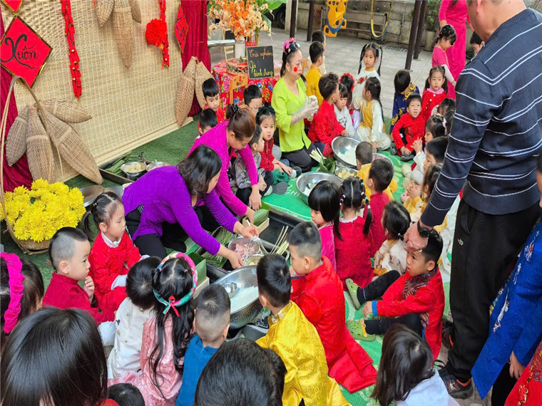 Tết Nguyên Đán là dịp lễ trọng đại không chỉ đối với người lớn mà còn là cơ hội tuyệt vời để các em nhỏ được vui chơi, trải nghiệm và tìm hiểu về những phong tục tập quán truyền thống. Để tạo không khí vui tươi và bổ ích cho các bé, các cô lớp B1 đã tổ chức một chuỗi các hoạt động đặc sắc, giúp các bé vừa học hỏi, vừa thư giãn và gắn kết tình cảm qua các trò chơi dân gian, hoạt động sáng tạo và những trải nghiệm thực tế về Tết.