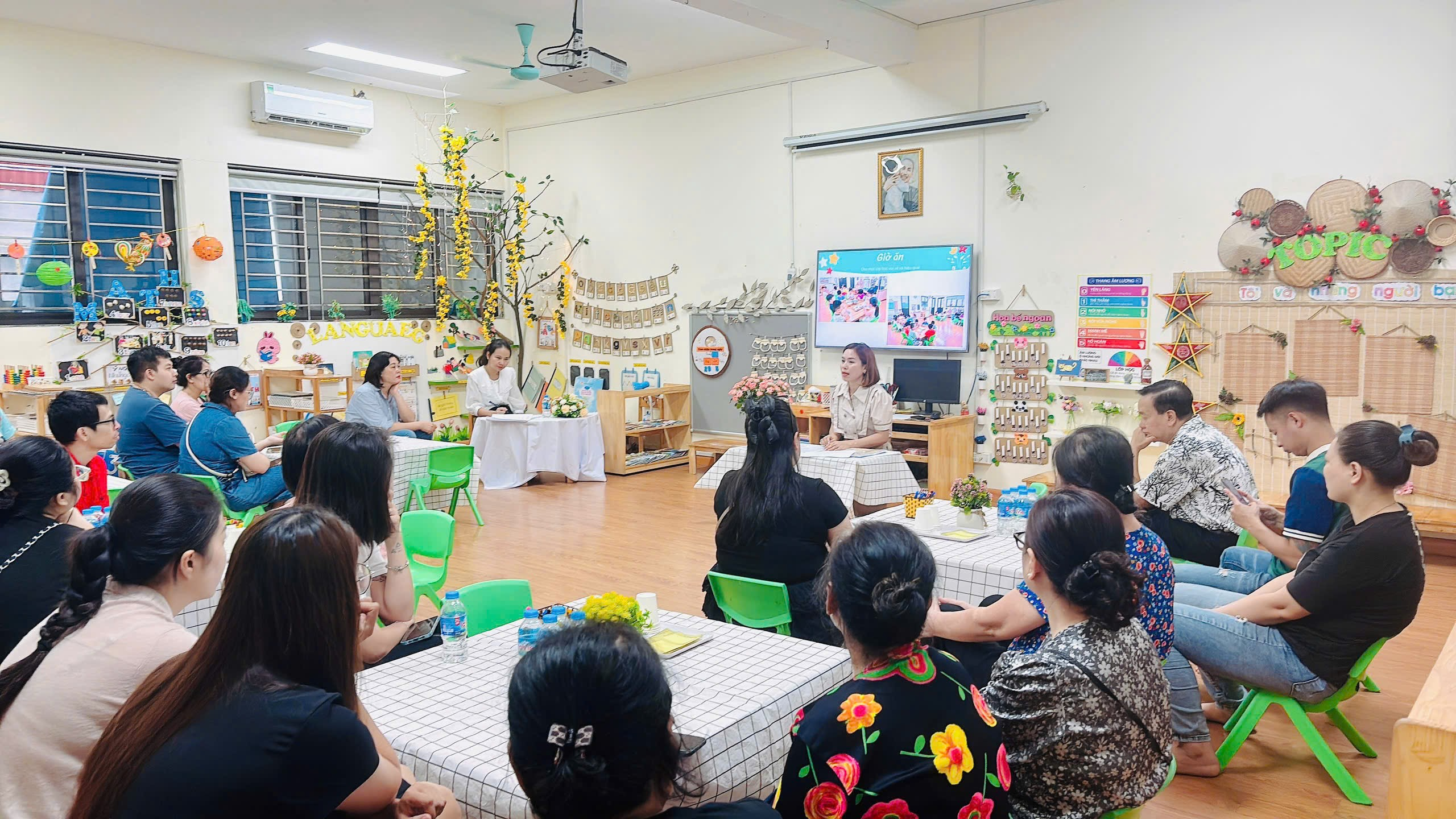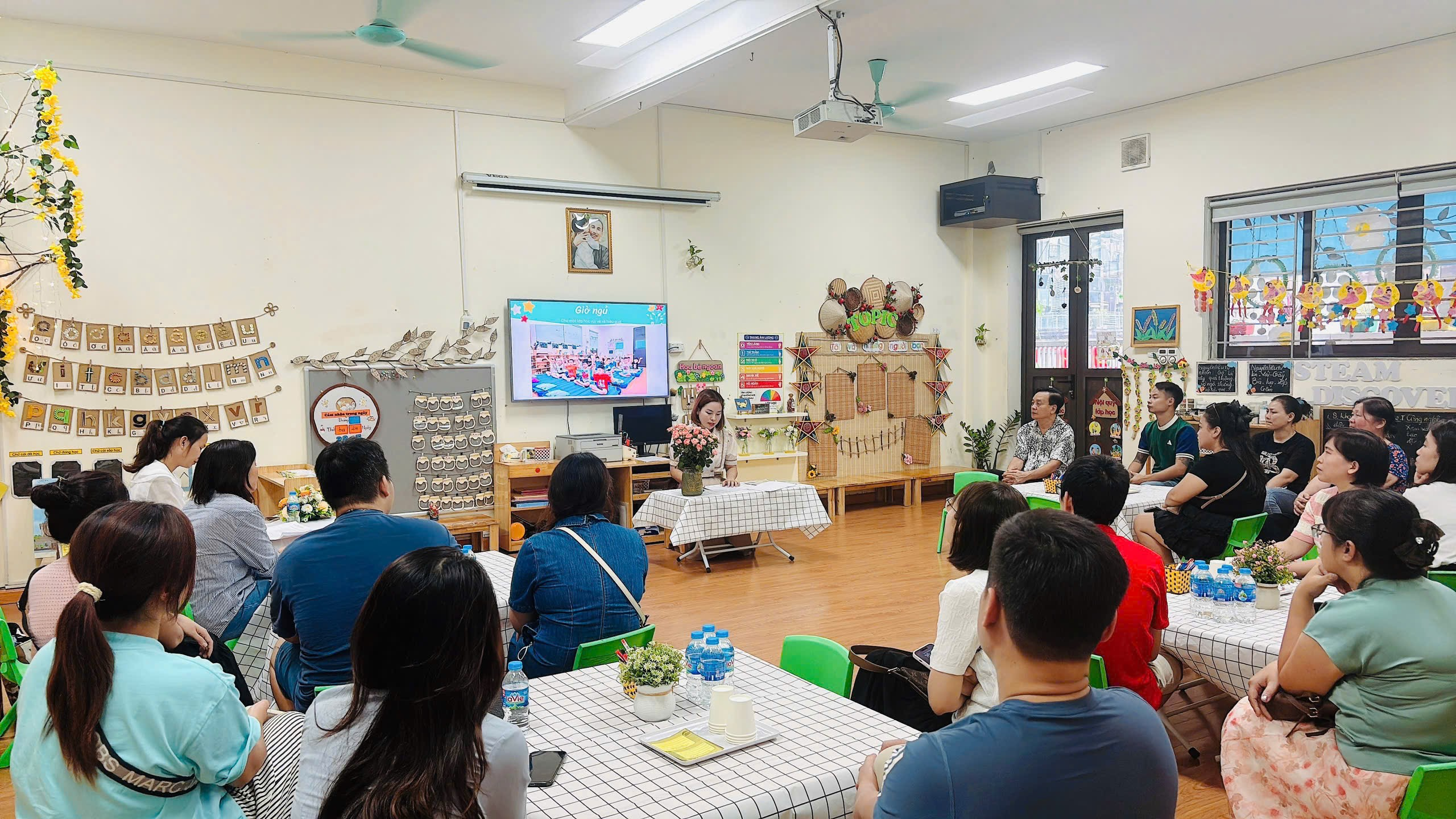 Cô Nguyễn Hằng – giáo viên chủ nhiệm lớp A1 đã báo cáo kế hoạch hoạt động nuôi dưỡng, chăm sóc, giáo dục trẻ tới phụ huynh. Tại cuộc họp, GVCN lớp đã thông báo những thành tích nổi bật mà nhà trường đã đạt được trong năm học 2024-2025 và phương hướng phấn đấu trong năm học 2025-2026. Đặc biệt, các bậc phụ huynh đã được nghe GVCN trao đổi về đặc điểm tình hình lớp học, nhận xét về các mặt của các con học sinh, hướng dẫn phụ huynh học sinh cách kèm cặp con tại nhà để các con có tâm thế tốt nhất khi bước vào lớp 1. Giáo viên cũng thông báo tới các vị phụ huynh trong lớp về một số nội quy của trường, của lớp.
