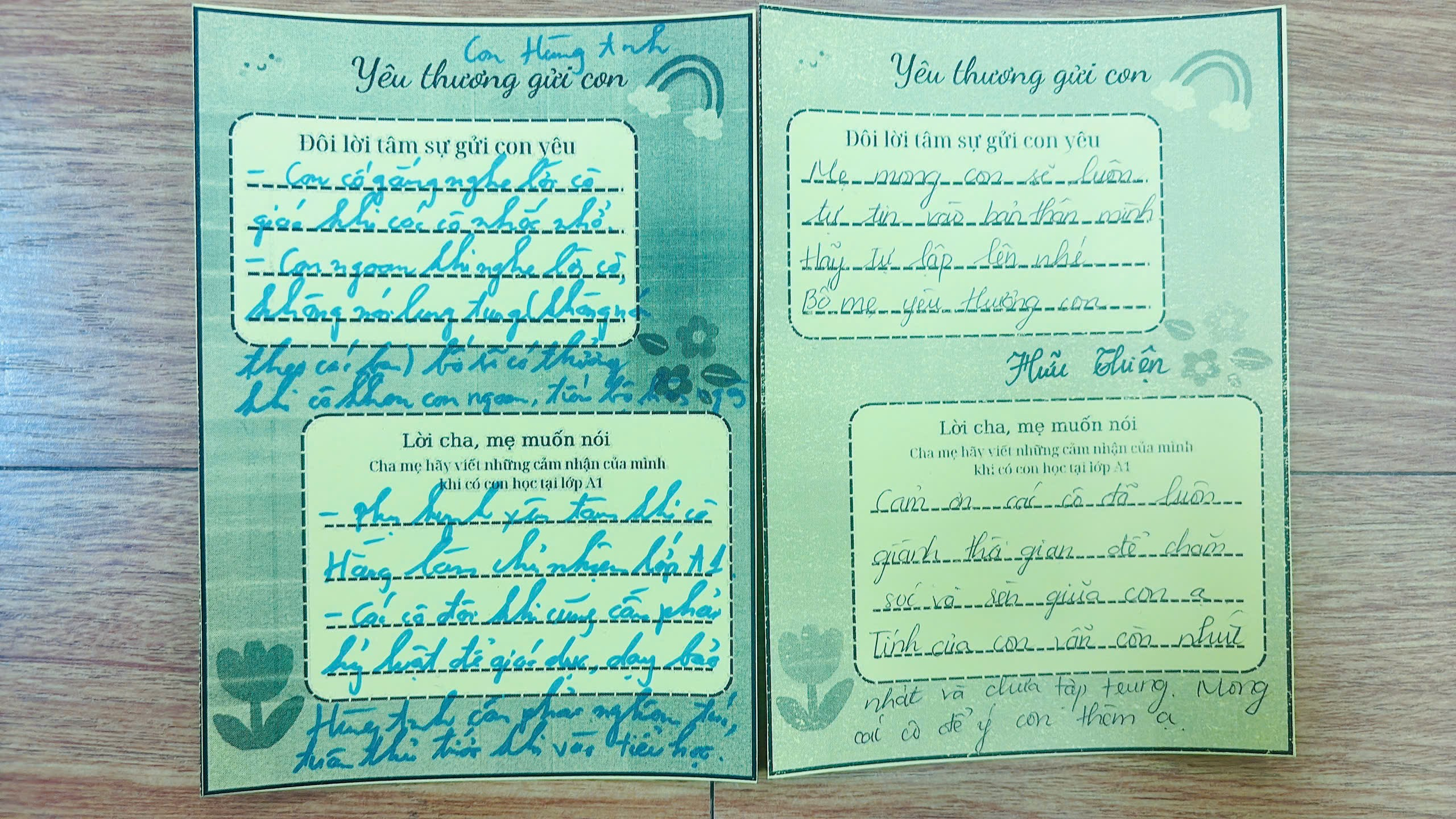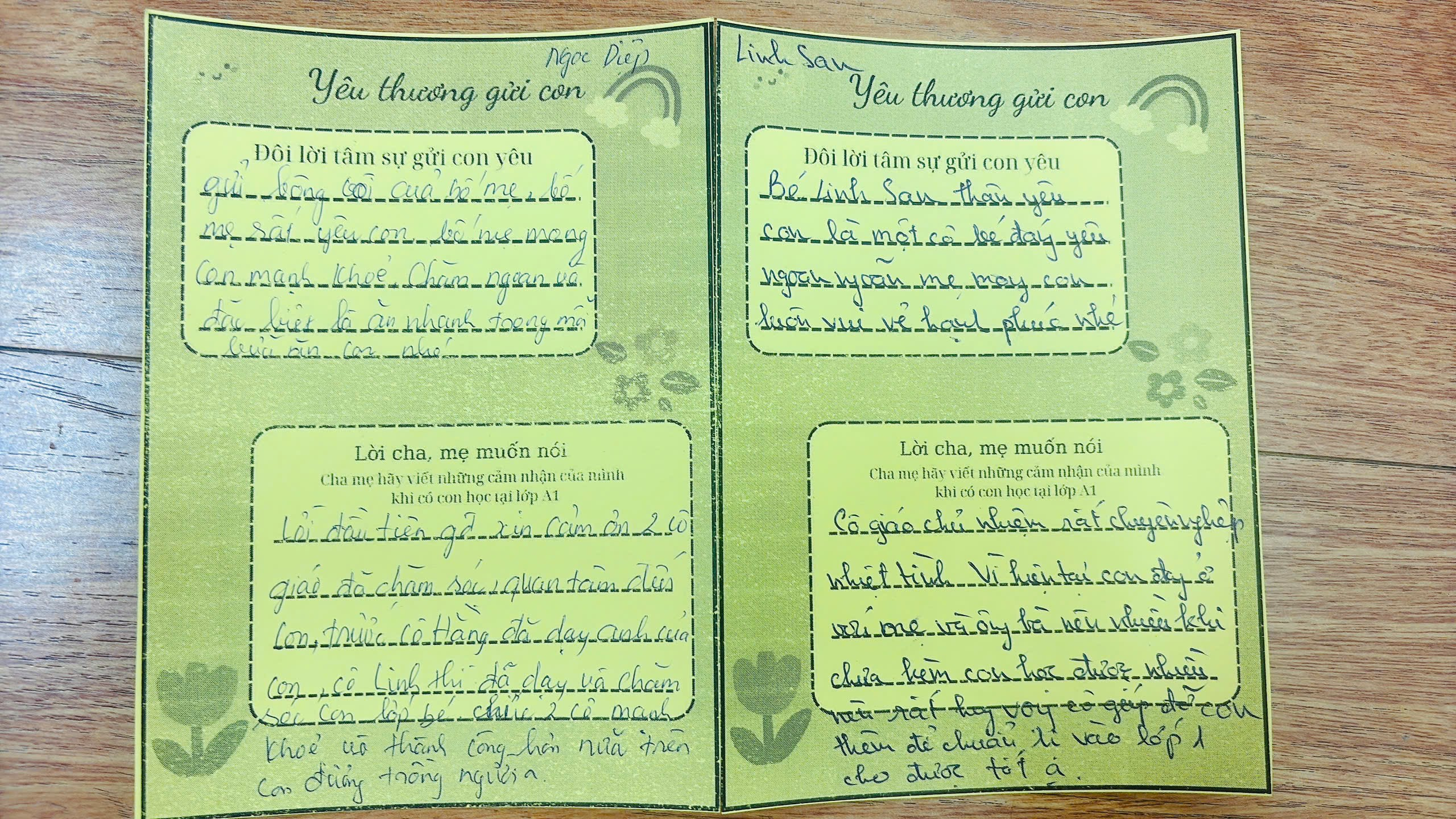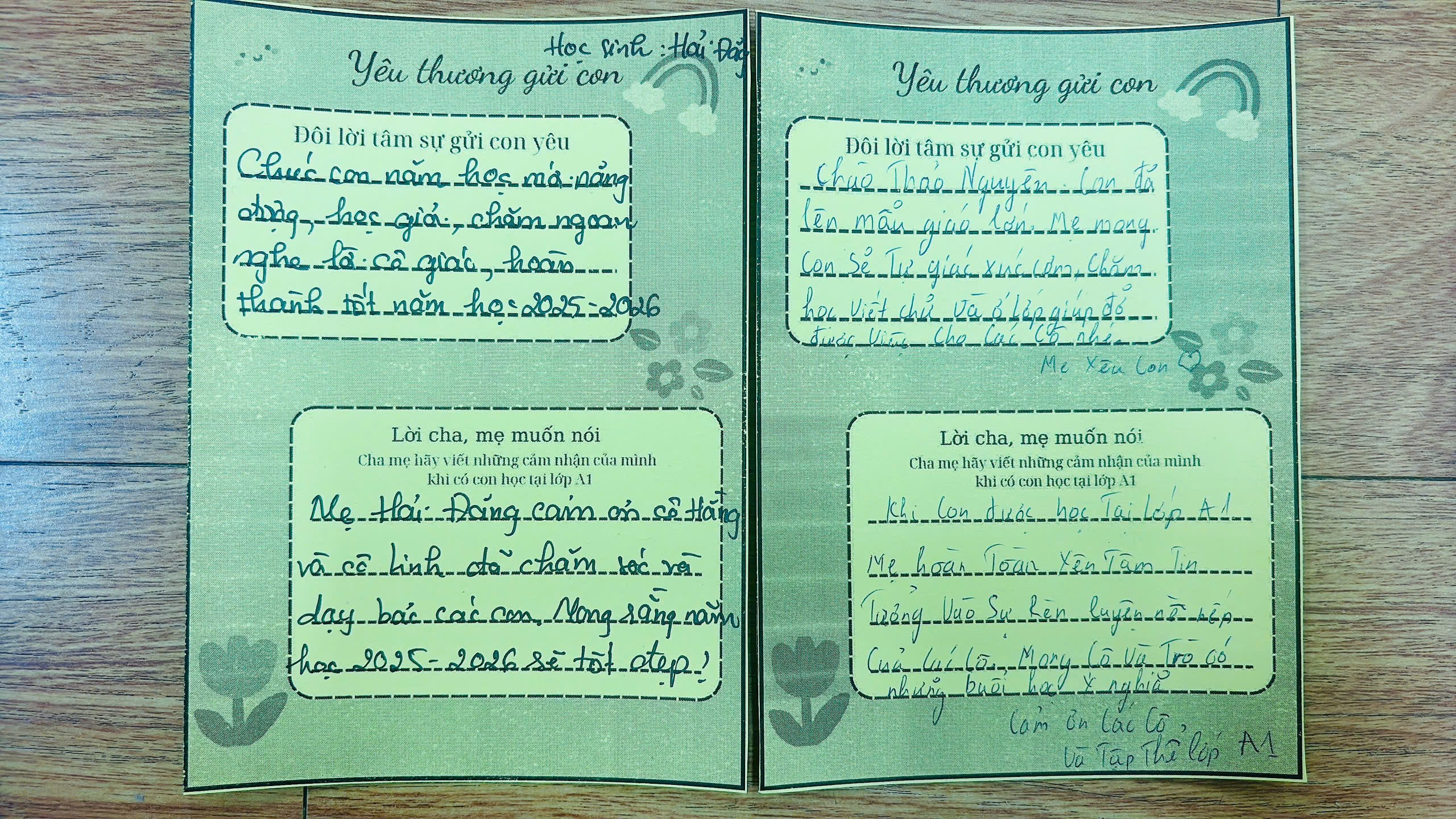 Chiều ngày 24/09/2025. Lớp Mẫu giáo lớn A1 đã tổ chức buổi gặp mặt thân mật đầu năm giữa giáo viên lớp với cha mẹ học sinh. Đây cũng là dịp để giáo viên và phụ huynh cùng lắng nghe những chia sẻ về việc học tập và sinh hoạt của các con tại trường. Không những vậy đây còn là cơ hội để xây dựng mối quan hệ hợp tác, gắn bó và thân tình giữa gia đình và nhà trường, giữa cô giáo và các bậc phụ huynh của trẻ. Bố mẹ cũng đã tự tay viết lên đôi lời tâm sự, gửi lời yêu thương đến con. Nói ra những lời bố mẹ chưa từng nói với con và hôm sau các cô sẽ đọc cho các con nghe để các con biết bố mẹ yêu thương các con đến nhường nào.