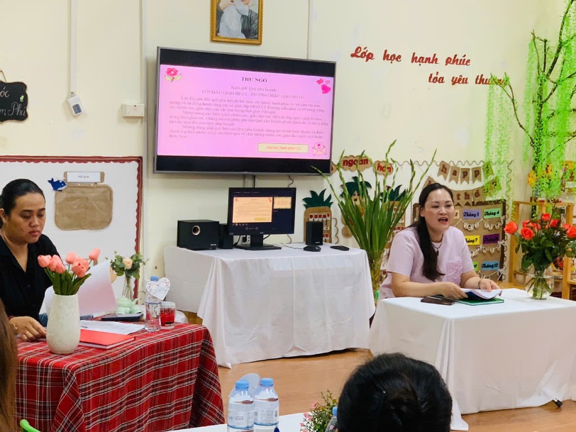 Ba cô giáo của lớp – cô Nhung, cô Như và cô Mai – đã gửi tới quý phụ huynh những lời chào đón chân thành, giới thiệu khái quát về chương trình chăm sóc, nuôi dưỡng và giáo dục trẻ trong năm học này. Không chỉ là những kế hoạch giảng dạy, các cô còn chia sẻ tâm huyết, tình yêu thương dành cho từng em nhỏ, mong muốn tạo cho các con một môi trường học tập an toàn, thân thiện và tràn đầy niềm vui.