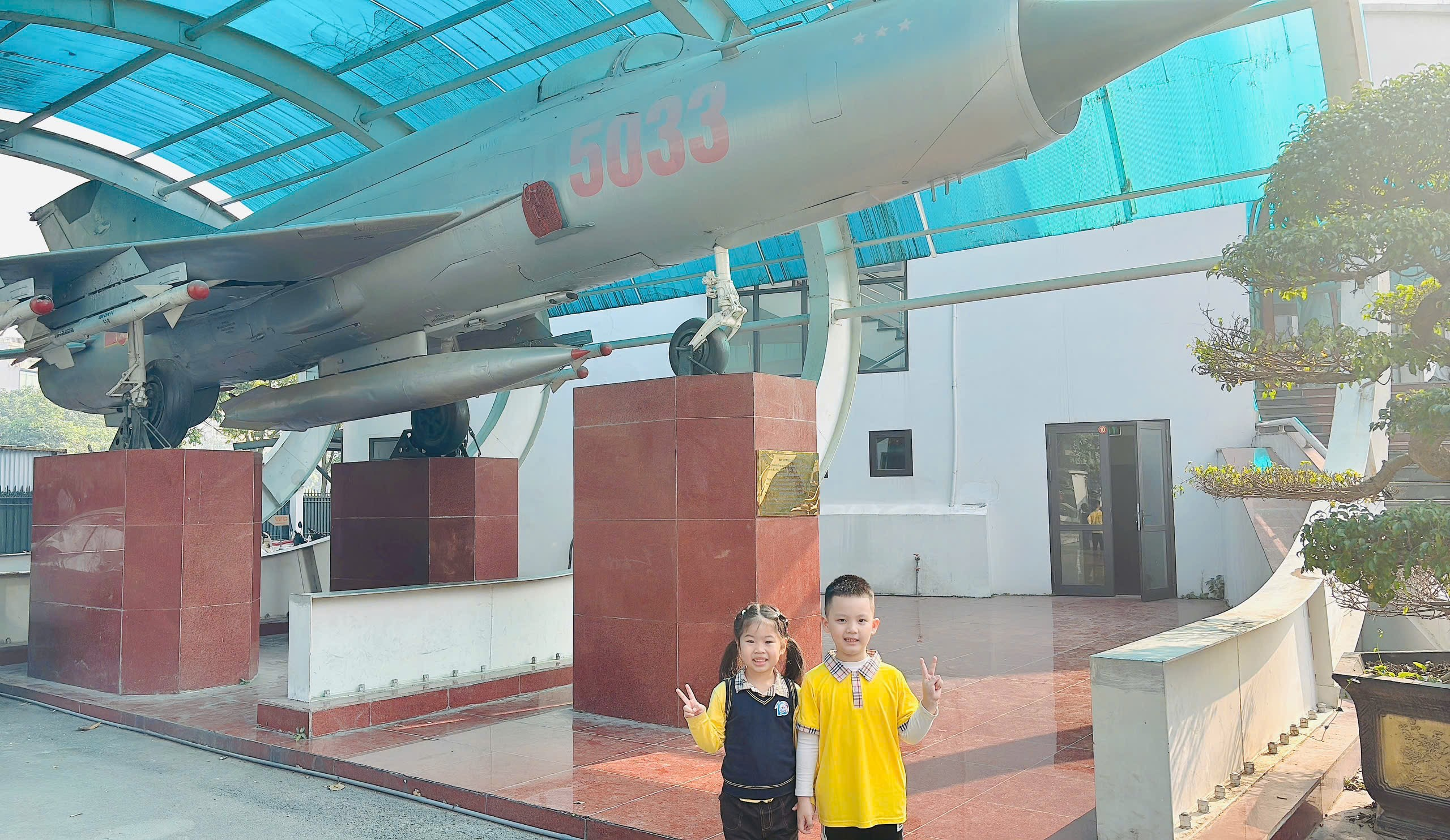 Các con đã tận mắt quan sát nhiều hiện vật còn lại từ chiến tranh như xác máy bay B-52, mảnh vỡ bom đạn, thiết bị quân sự…. Không gian trưng bày khu ngoài trời với các hiện vật lớn giúp lịch sử trở nên trực quan, gần gũi và dễ hiểu hơn đối với trẻ.