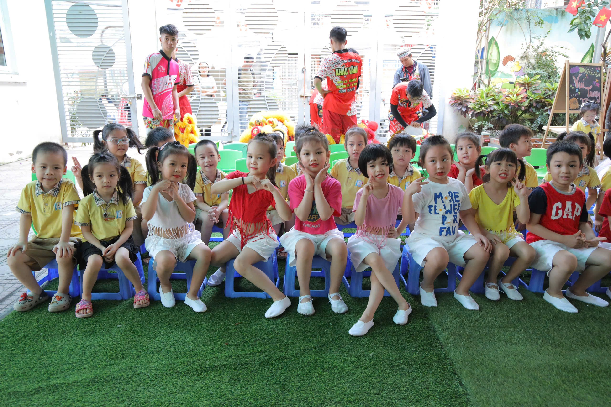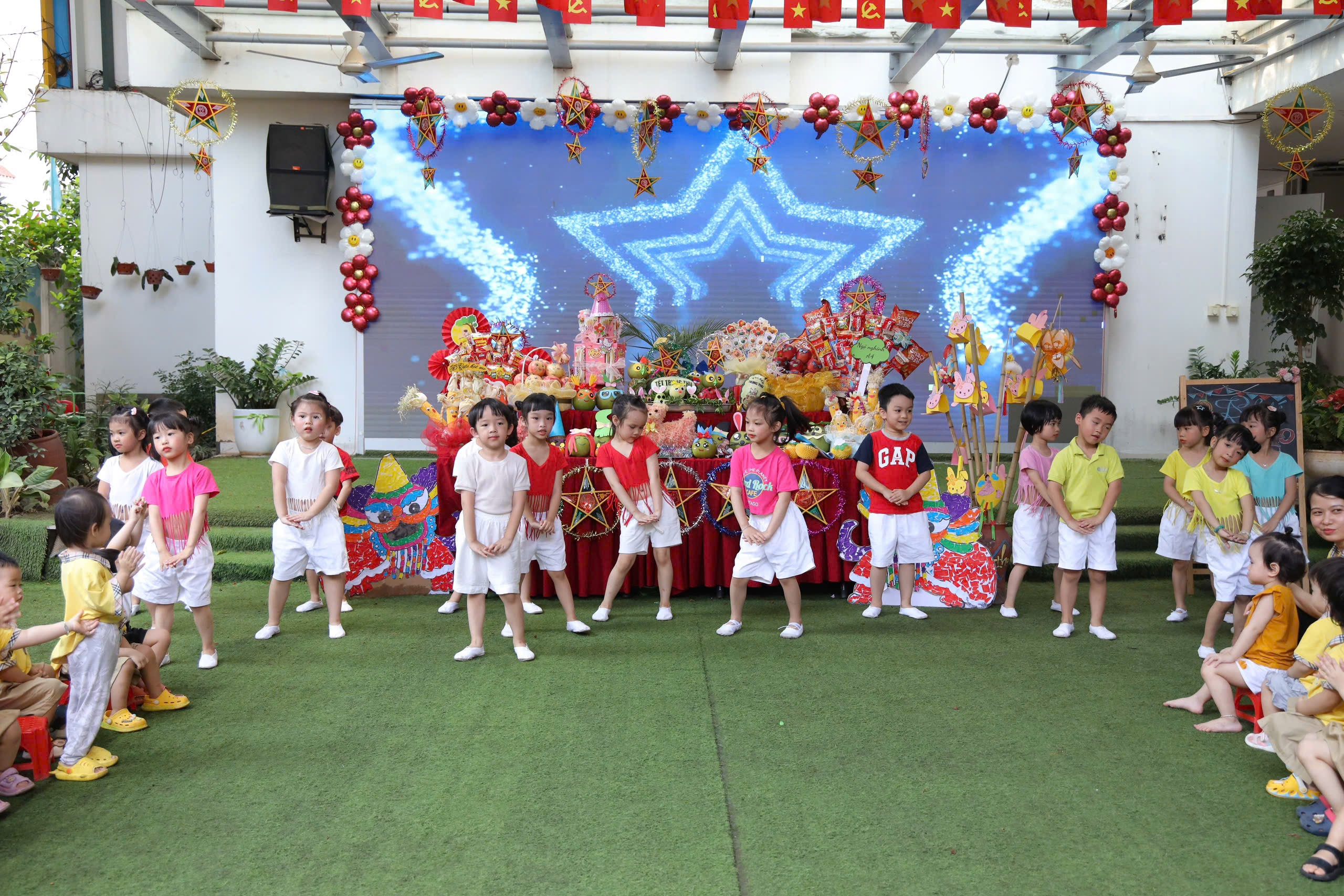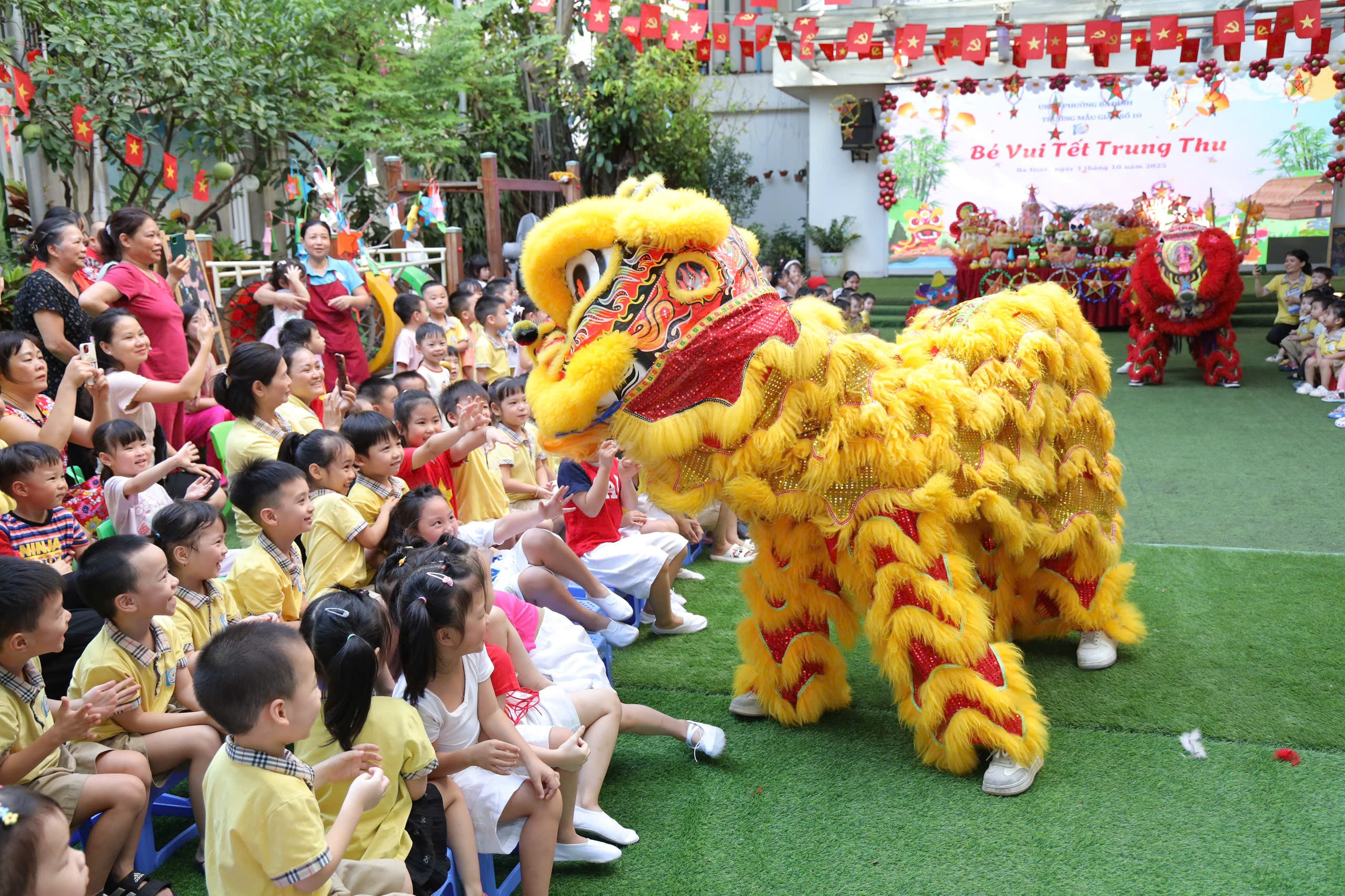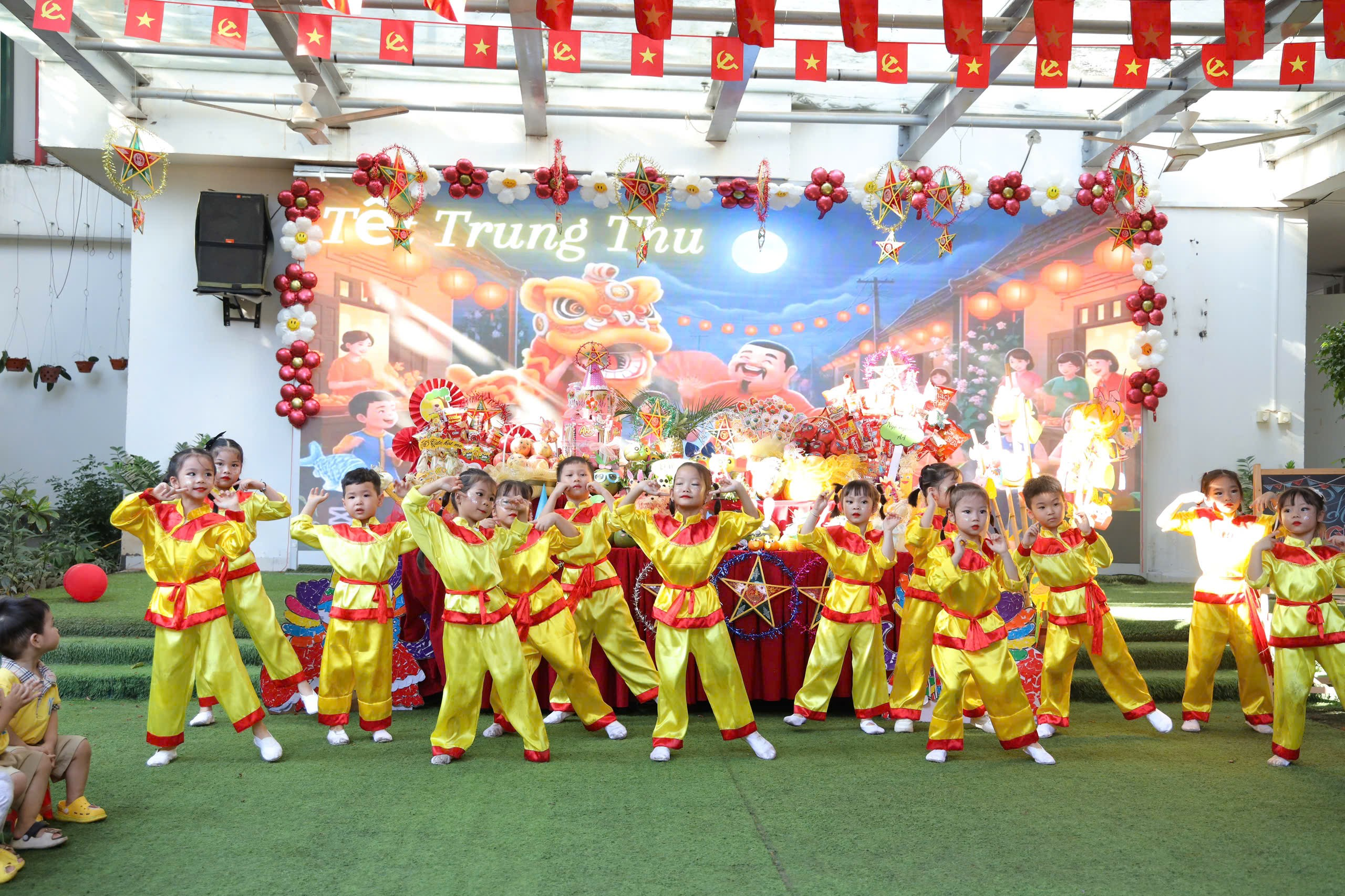 Buổi chiều: Không khí hội rộn ràng hơn bao giờ hết với những tiết mục văn nghệ do chính các bạn nhỏ biểu diễn. Tiếng trống múa lân vang dội khắp sân trường khiến các bé vô cùng thích thú, gương mặt ai cũng rạng rỡ niềm vui.