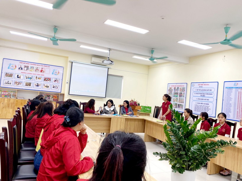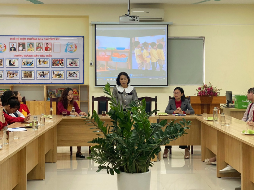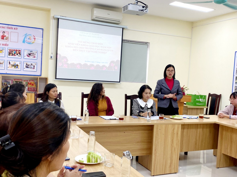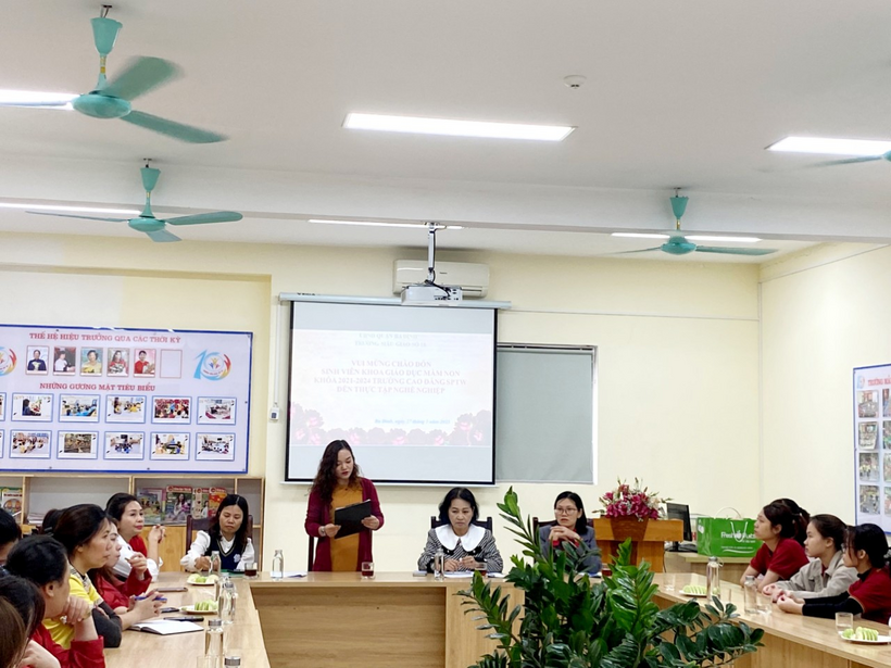 Cô Dương Thu Giang phó hiệu trưởng nhà trường đã thay mặt BGH phân công giáo viên hướng dẫn và sinh viên vào thực tập tại các lớp, đồng thời phổ biến nội dung, lịch trình thực hiện
