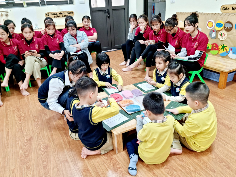 Ngay sau buổi gặp mặt nhà trường đã tổ chức cho sinh viên kiến tập tập trung một số hoạt động chăm sóc – giáo dục trẻ ở các độ tuổi: nhà trẻ,mẫu giáo lớn, mẫu giáo nhỡ và mẫu giáo bé từ ngày 24 đến ngày 31 tháng 3 năm 2023. Sinh viên được kiến tập các hoạt động gồm: Lĩnh vực phát triển nhận thức, ngôn ngữ, thẩm mỹ, hoạt động vui chơi tại các góc, hoạt động ngoài trời và hoạt động ăn trưa để giúp các em nắm được phương pháp, cách thức tổ chức các hoạt động chăm sóc giáo dục trẻ trước khi thực hành tại lớp của mình.