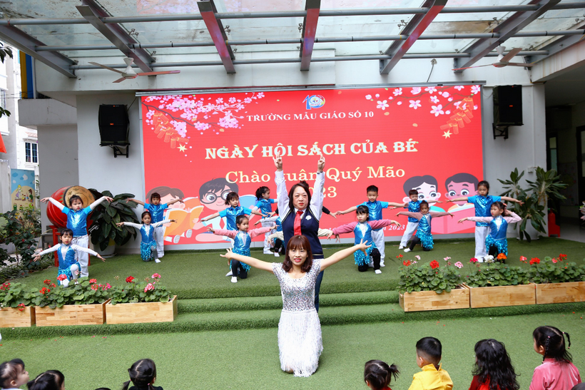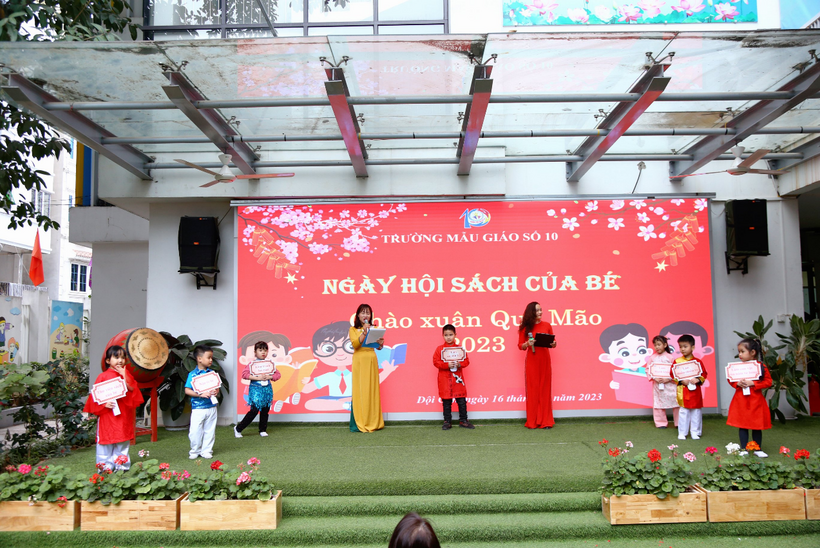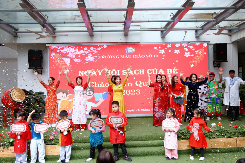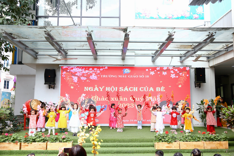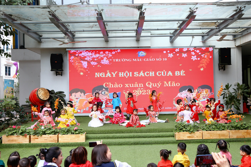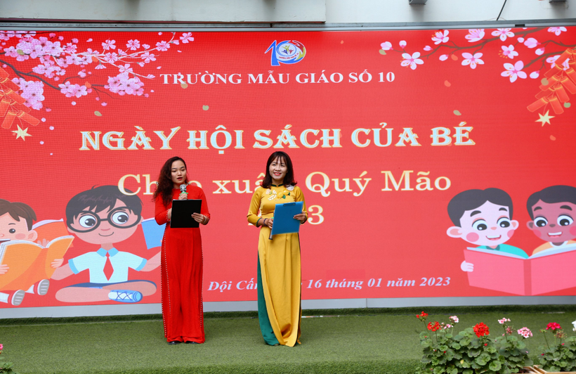 Chiều ngày 16 tháng 1 năm 2023 trường Mẫu giáo Số 10 tưng bừng tổ chức ngày hội sách của Bé chào đón xuân Quý Mão 2023 tại sân trường.