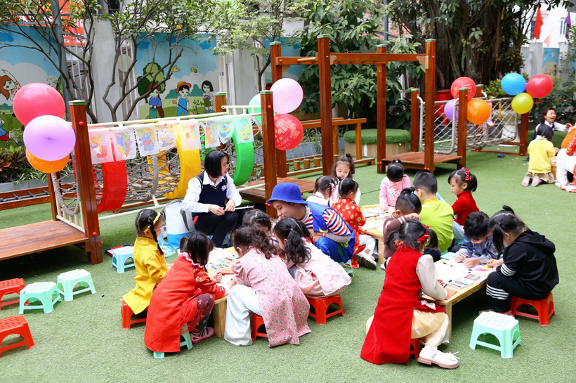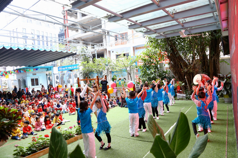 Tiết mục Vũ điệu Như hoa mùa xuân của lớp mẫu giáo lớn A2, A3