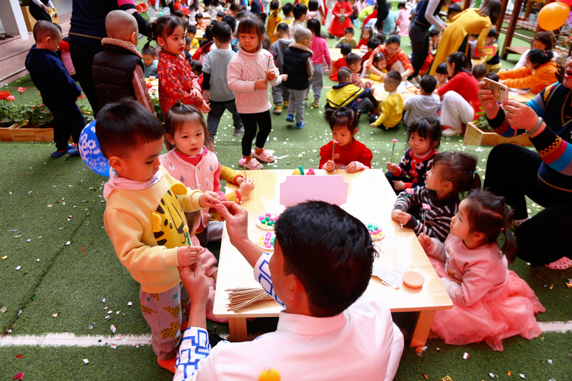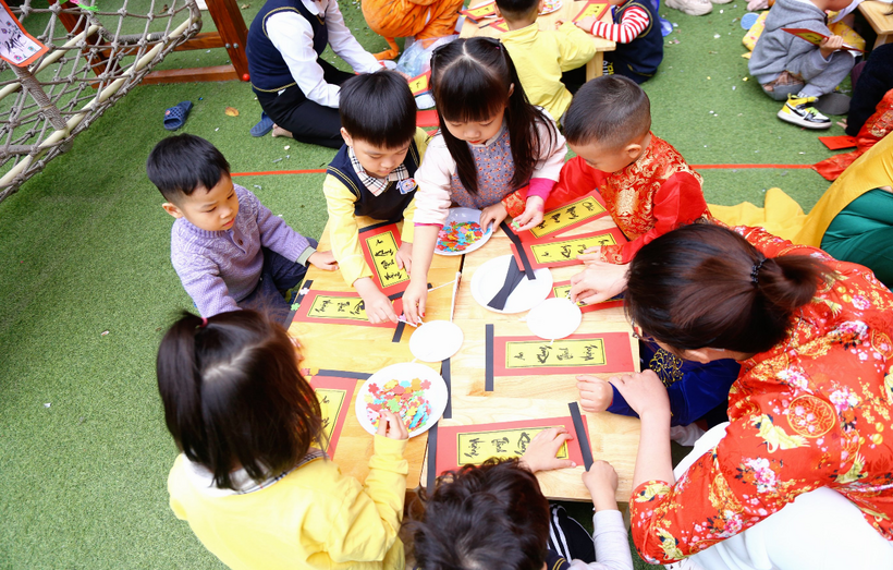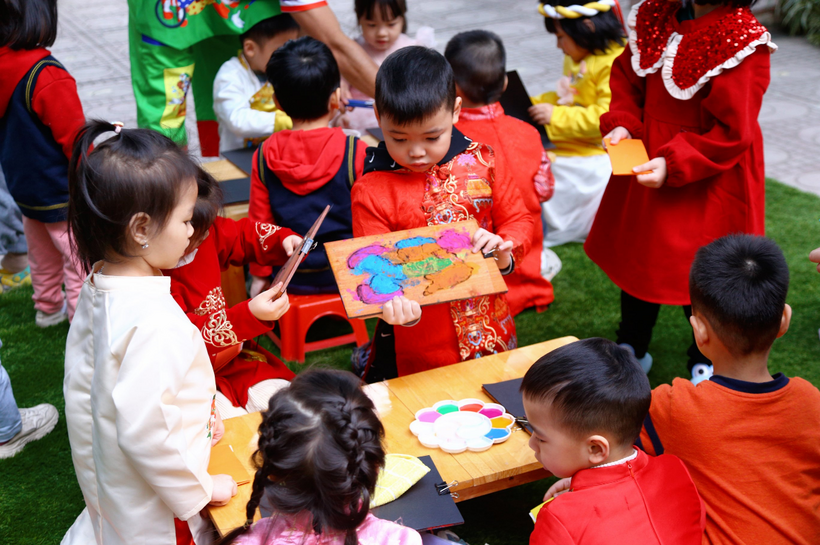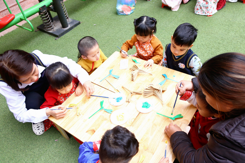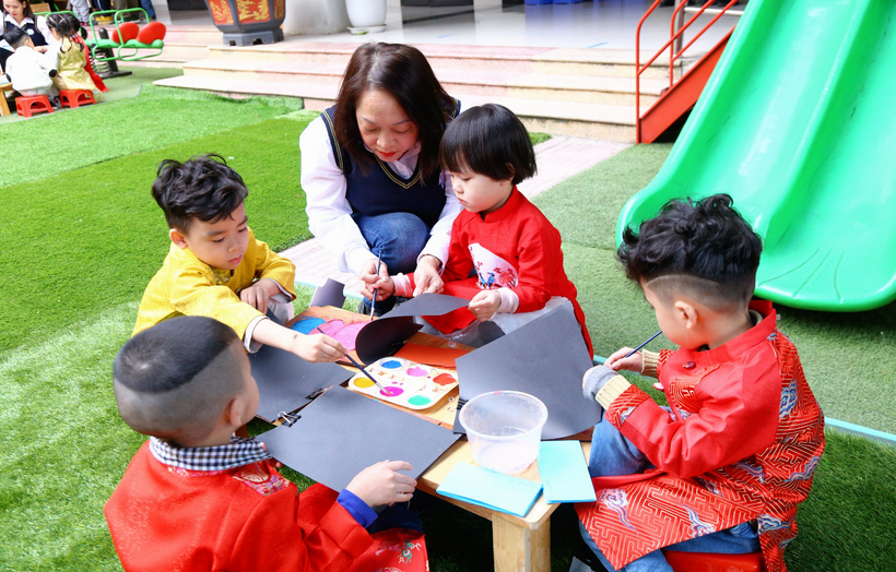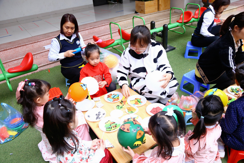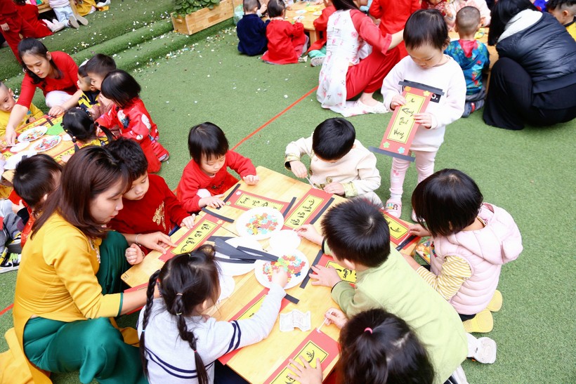 Các bé đã rất vui vẻ hứng thú tham gia các nhóm chơi để tự tạo cho mình các sản phẩm mang về làm quà tặng người thân trong gia đình nhân dịp Tết Quý Mão.