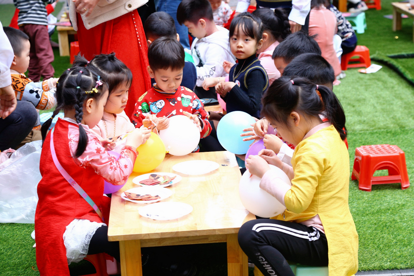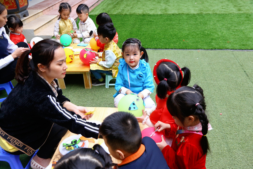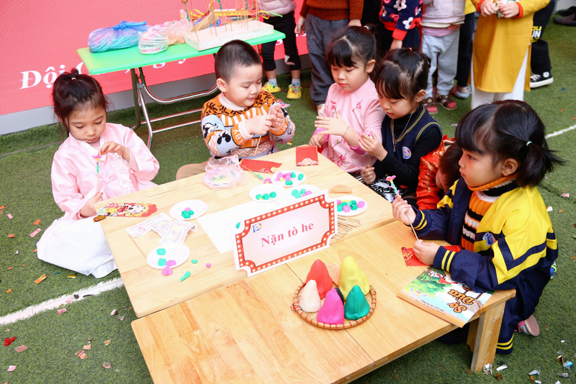 Sau phần lễ hội, học sinh được tham gia các nhóm chơi trải nghiệm tại sân trường với nhiều các hoạt động phong phú và hấp dẫn như: Thư viện sách của bé với hoạt động lựa chọn sách, đọc sách, làm con vật của năm từ bóng, làm tò he, làm tranh khắc, làm tranh 2 mặt, làm chuồn chuồn tre, làm câu đối Tết…