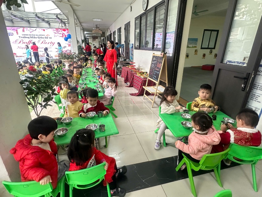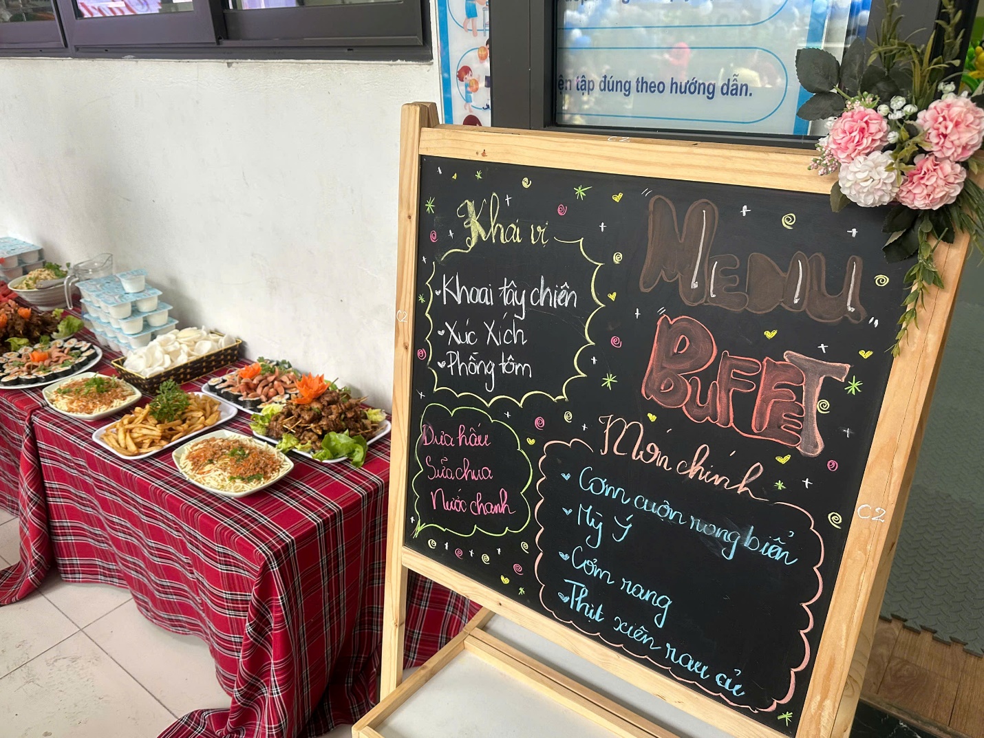 Tổ chức tiệc buffet cho trẻ là một trong những hoạt động thiết thực, hiệu quả nhằm tạo dựng cho trẻ những kỹ năng sống cần thiết ngay từ khi còn nhỏ. Tiệc buffet không chỉ là dịp để các con trải nghiệm ẩm thực đa dạng mà còn là cơ hội để các con rèn luyện tính tự lập, sự tự tin, kỹ năng giao tiếp và đặc biệt là thói quen văn minh trong ăn uống. Với ý nghĩa như vậy, trong những ngày cuối cùng của năm 2024 chuẩn bị bước sang năm mới 2025, Trường Mẫu giáo số 10 đã tổ chức tiệc buffet “Chào đón năm mới 2025” cho trẻ.