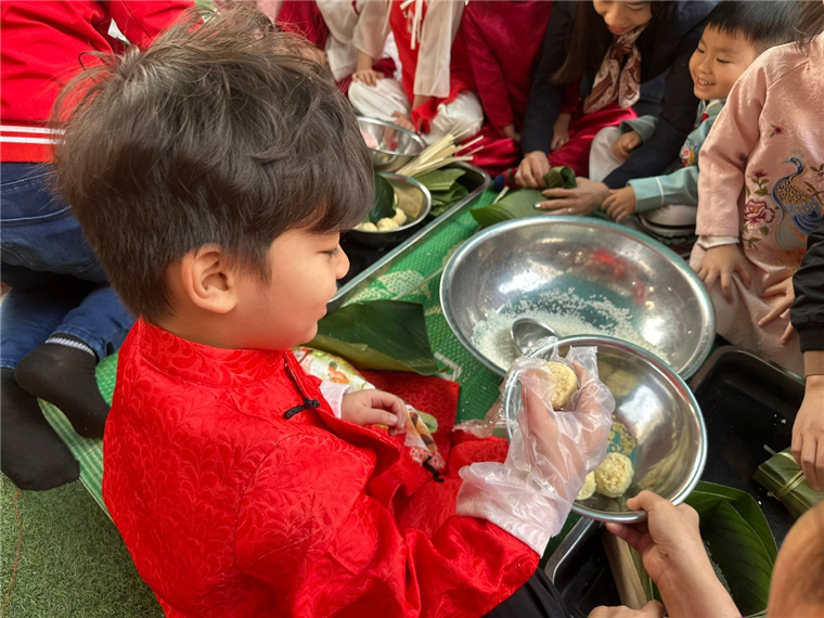 Khai mạc lễ hội các bé cùng múa hát giai điệu “Chúc xuân”, được treo những chiếc đèn lồng xinh xắn có ghi những lời chúc, lời mong ước của các bé cho một năm mới tốt đẹp, nhiều niềm vui. Sau đó các bé được tham gia các nhóm chơi dân gian trải nghiệm tại sân trường với nhiều các hoạt động phong phú và hấp dẫn như: làm tò he, làm tranh khắc, làm chuồn chuồn tre, làm câu đối Tết, bịt mắt đập niêu, kéo co, bắt vịt, nhảy bao bố, nhảy sạp… Và hoạt động mang hương vị ngày tết đặc trưng nhất là khu gói bánh chưng tết, các bé được trực tiếp quan sát, nghe cô bác hướng dẫn và tham gia gói bánh. Những chiếc bánh xinh xắn được hình thành khiến các bé vô cùng thích thú.