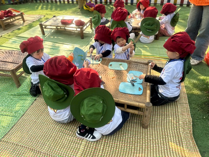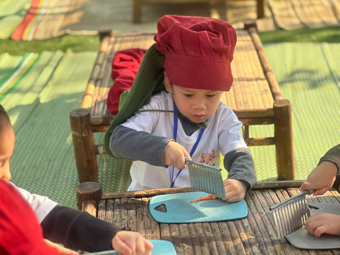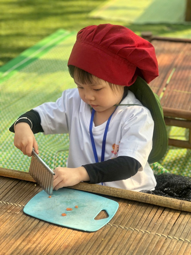 Các đầu bếp tí hon tập trung chế biến nguyên liệu