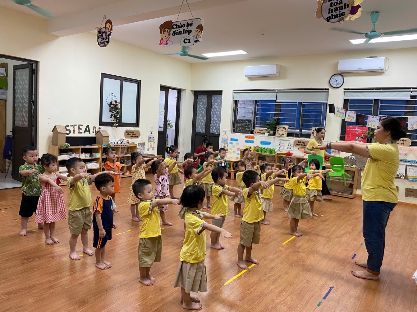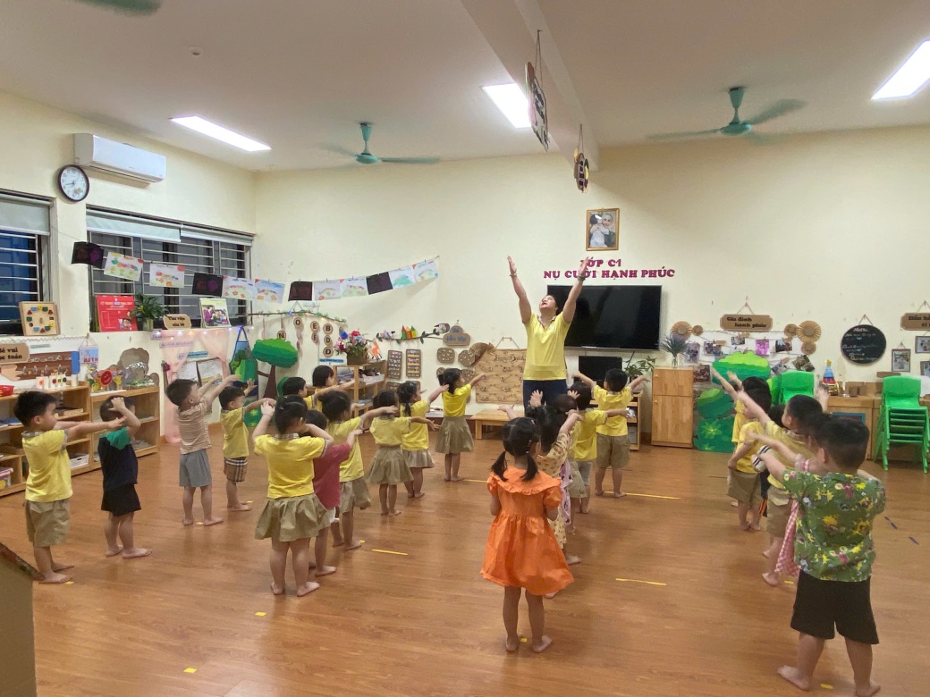 * Một số hình ảnh trẻ tham gia hoạt động thể dục buổi sáng: