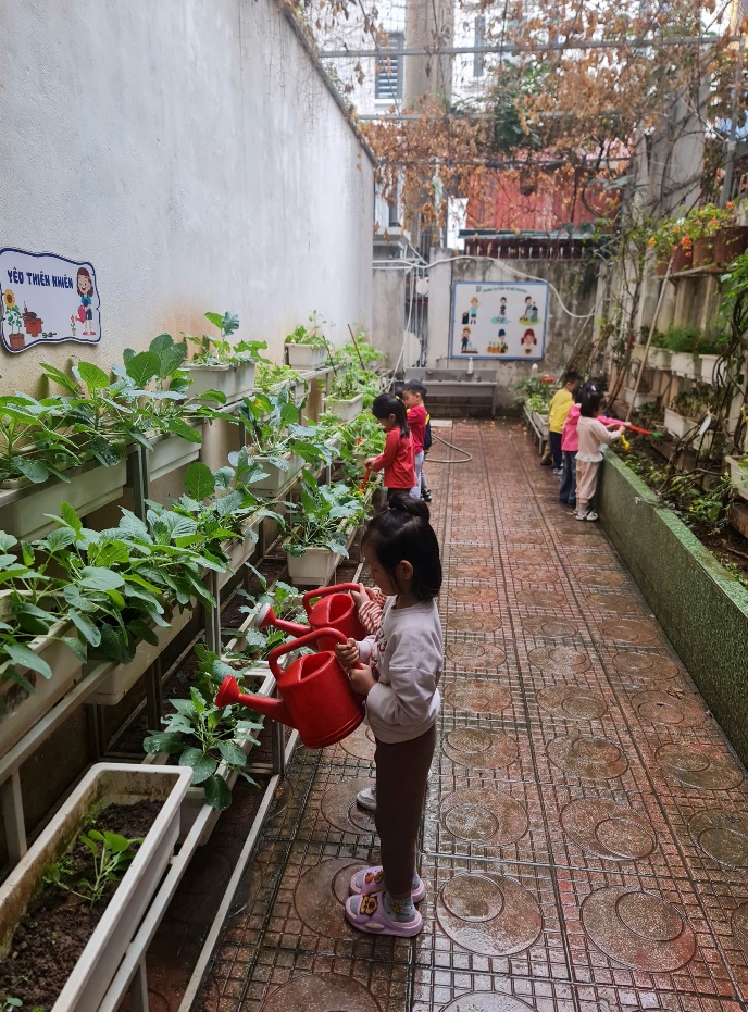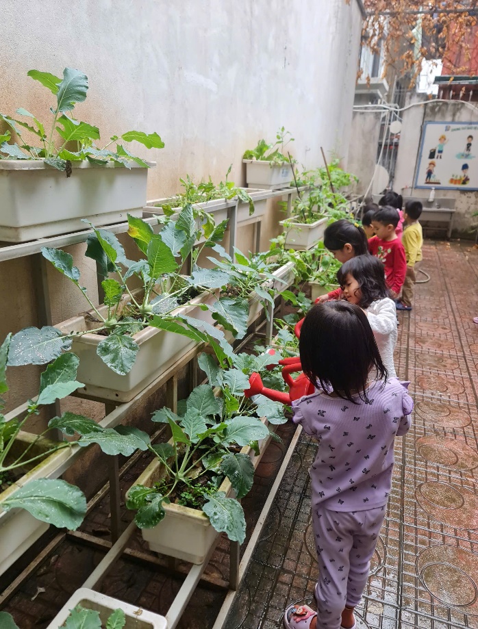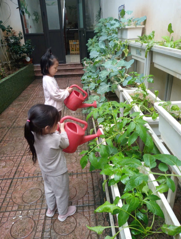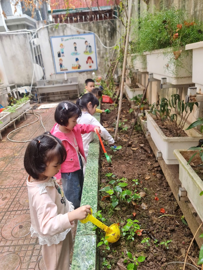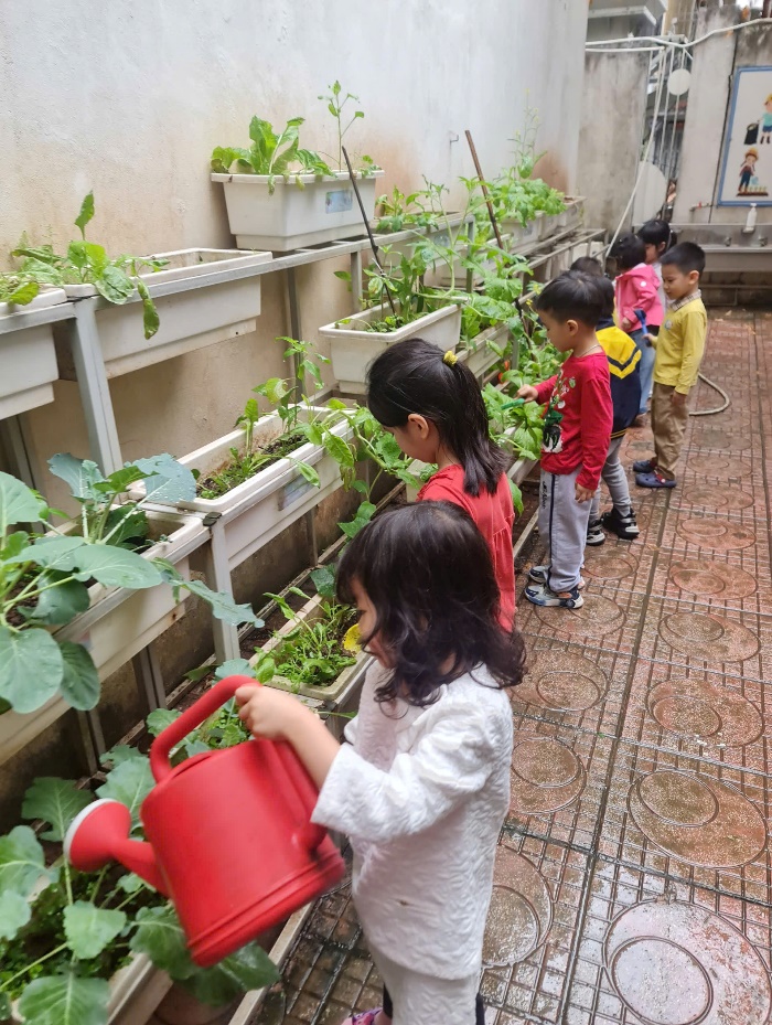 Với những đôi bàn tay nhỏ xinh, các bé đã tự tay vun đất, tưới nước và chăm sóc cho những mầm xanh mới.
